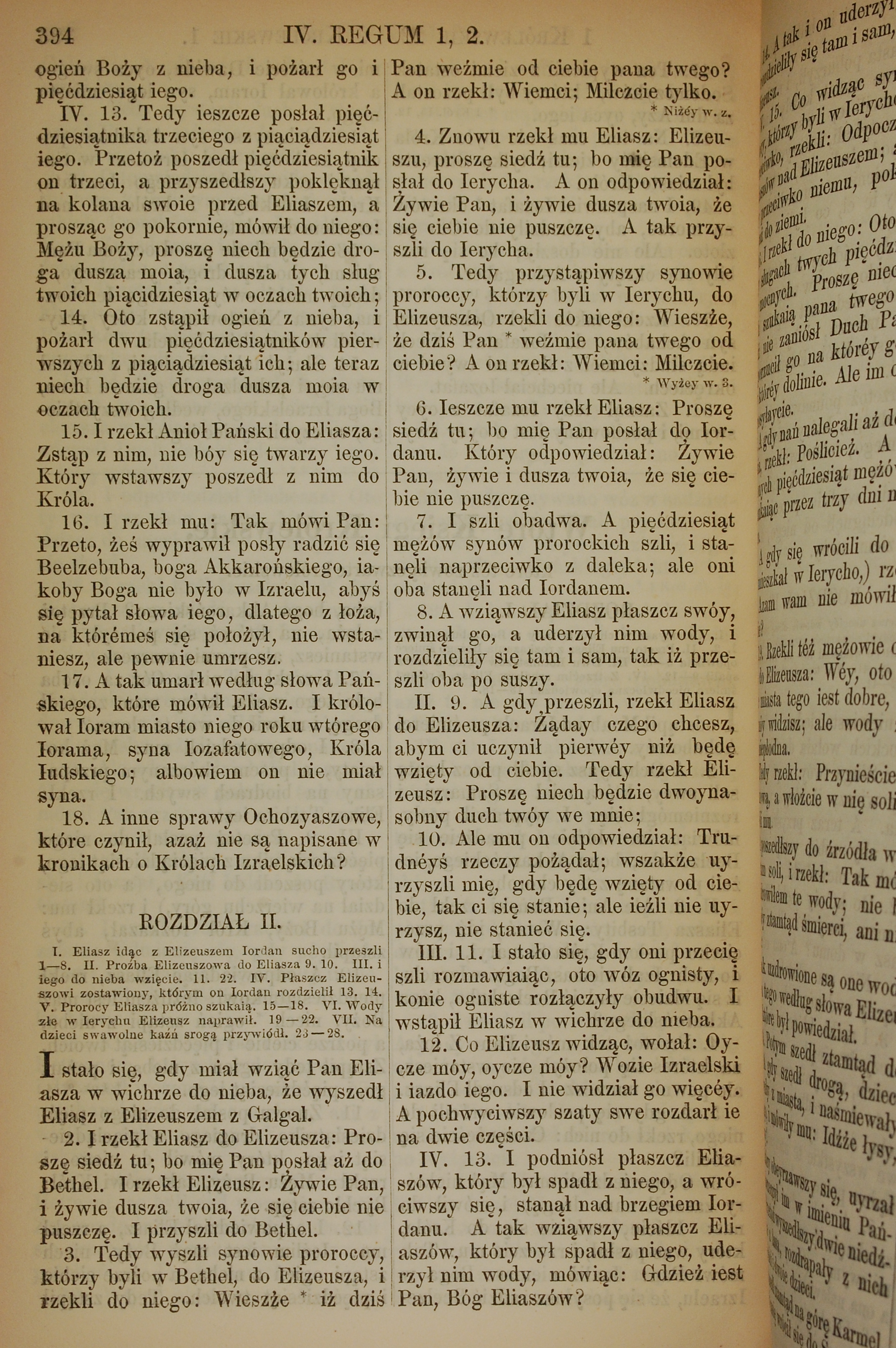 1857年波蘭文新舊約全書 列王紀下 1 章 13 節到 2 章 13 節