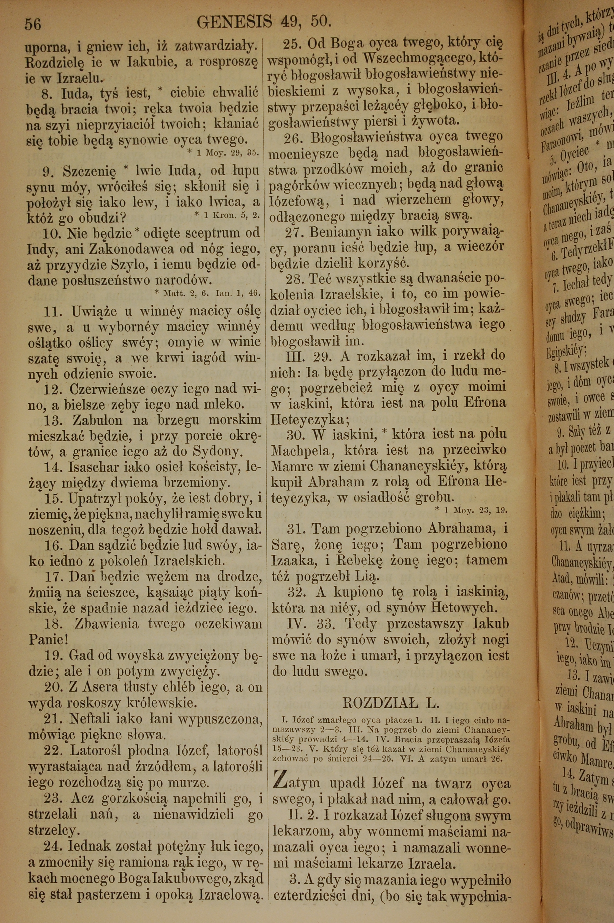 1857年波蘭文新舊約全書 創世記 49 章 8 節到 50 章 3 節
