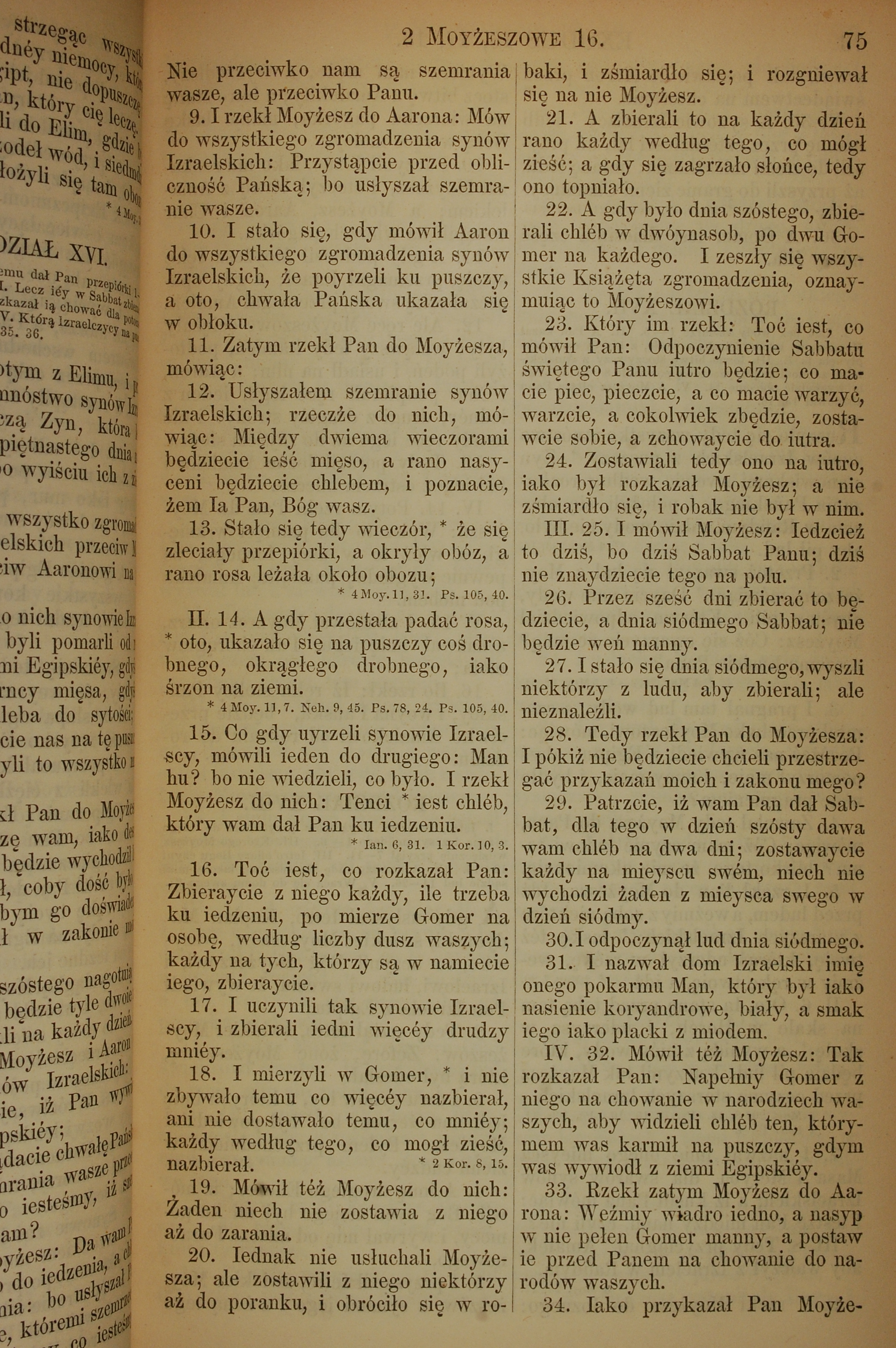 1857年波蘭文新舊約全書 出埃及記 16 章 9 節到 16 章 34 節