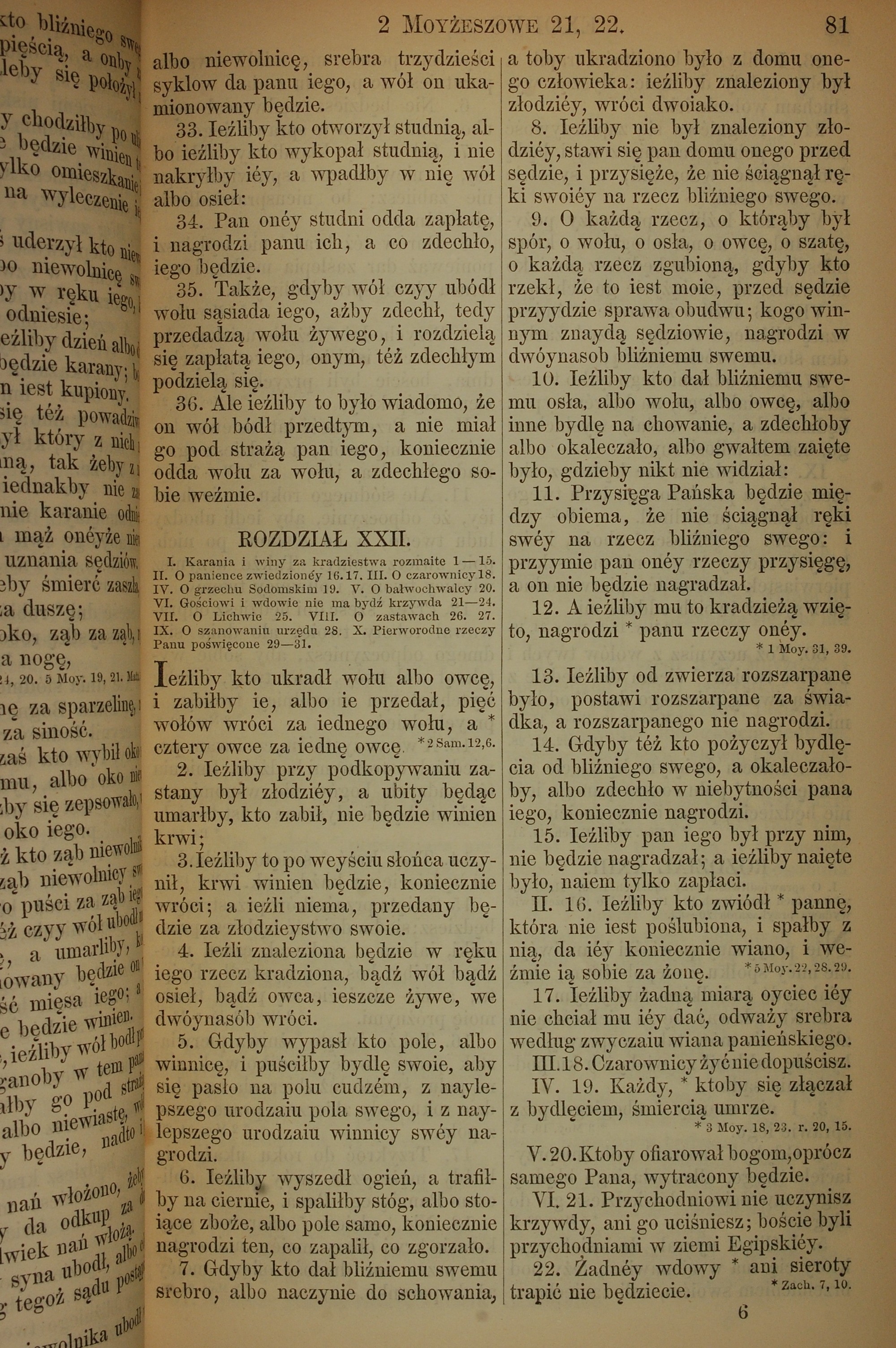 1857年波蘭文新舊約全書 出埃及記 21 章 33 節到 22 章 22 節