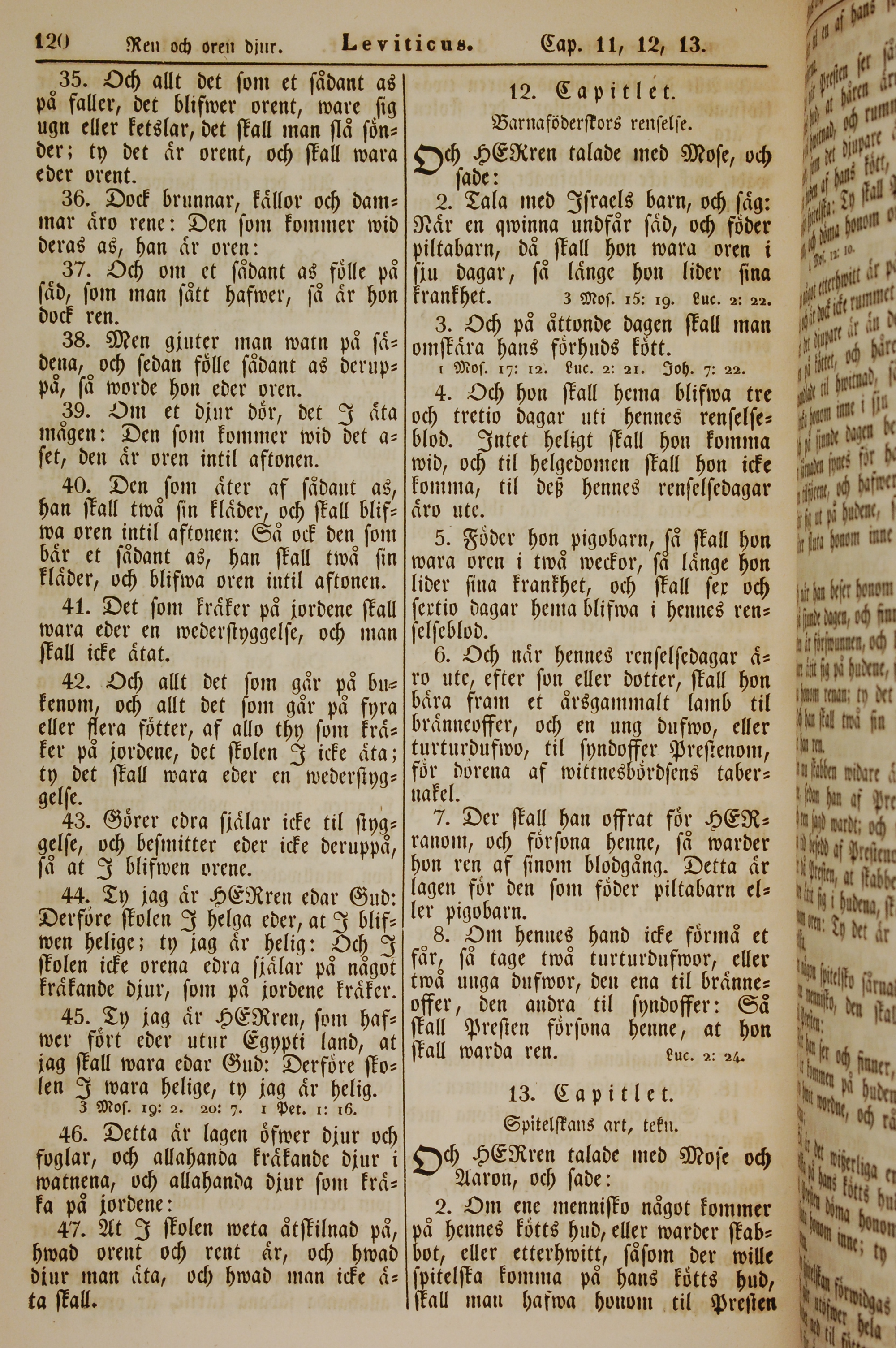 1862年新舊約全書 利未記 11 章 35 節到 13 章 2 節