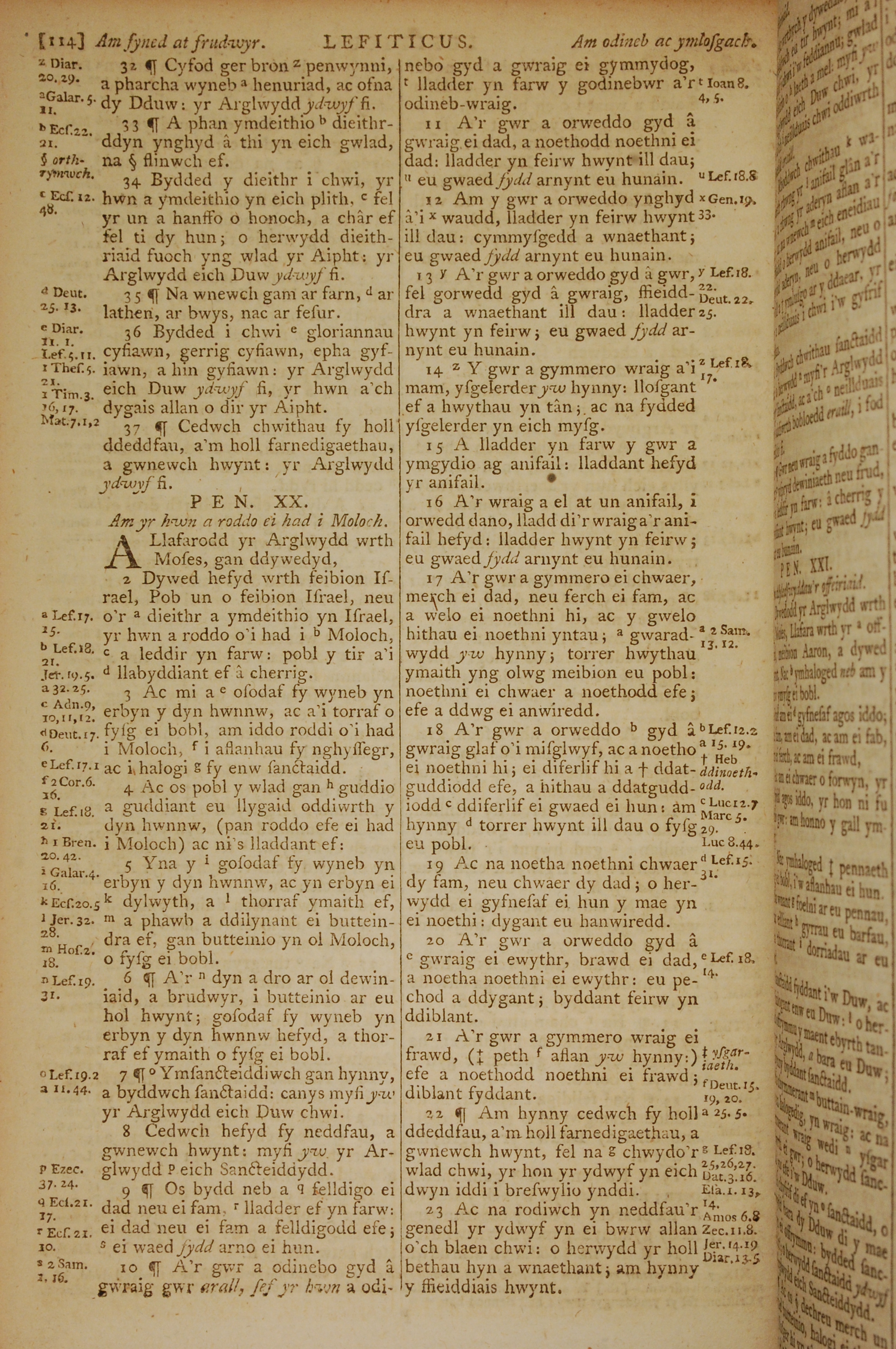 1796年威爾斯文新舊約全書 利未記 19 章 32 節到 20 章 23 節