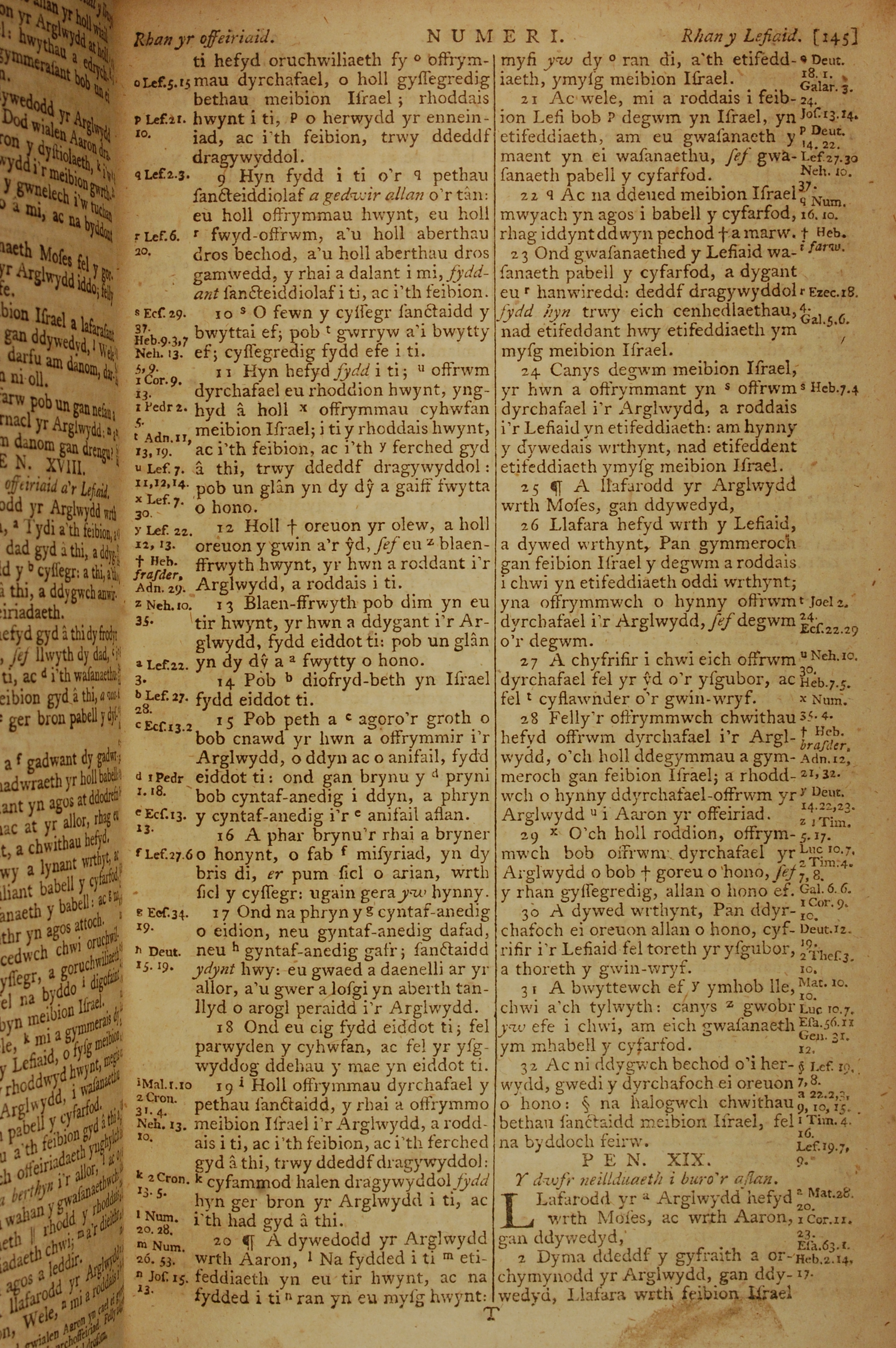 1796年威爾斯文新舊約全書 民數記 18 章 9 節到 19 章 2 節
