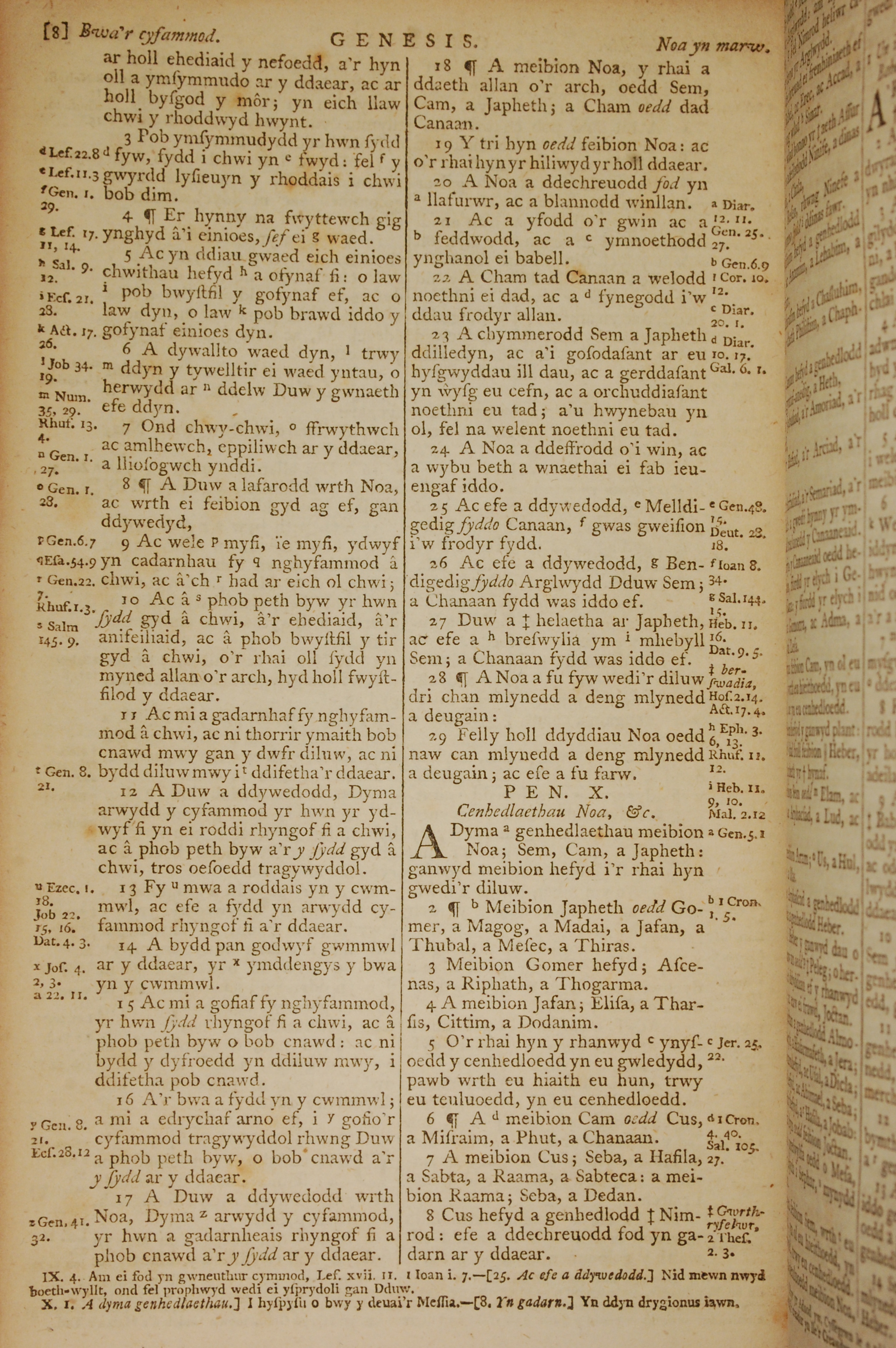 1796年威爾斯文新舊約全書 創世記 9 章 3 節到 10 章 8 節