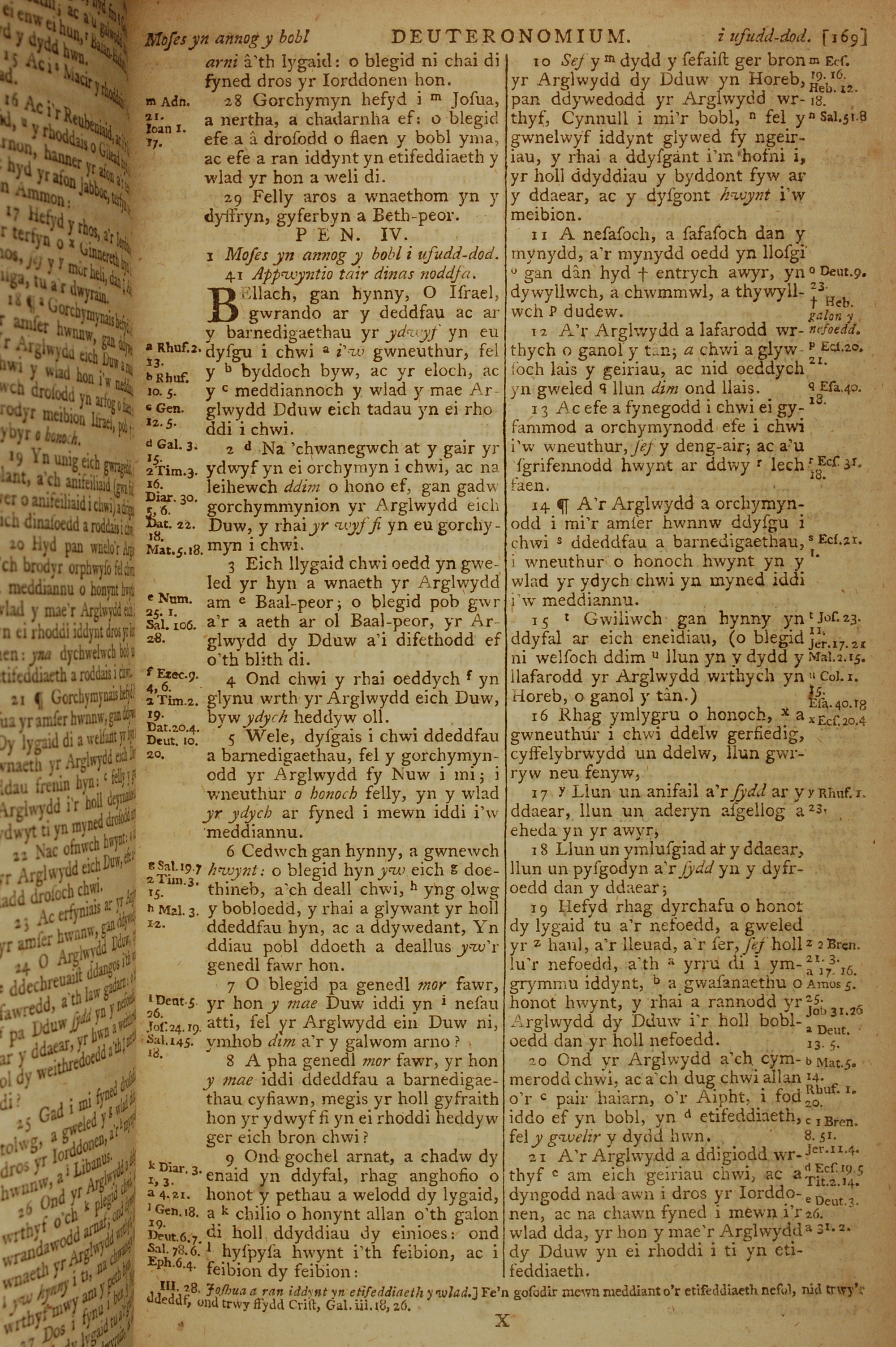 1796年威爾斯文新舊約全書 申命記 3 章 28 節到 4 章 21 節