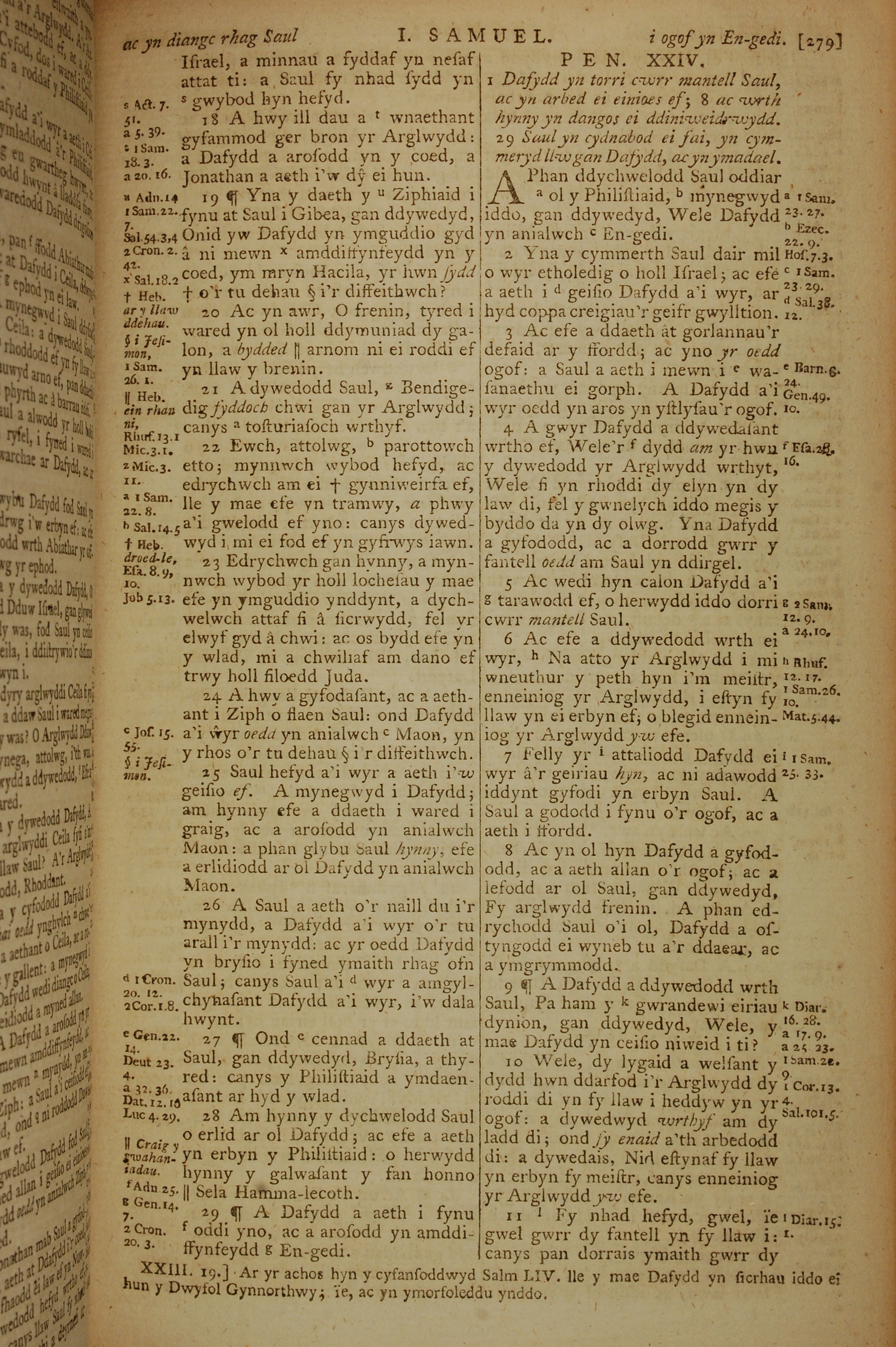1796年威爾斯文新舊約全書 撒母耳記上 23 章 18 節到 24 章 11 節