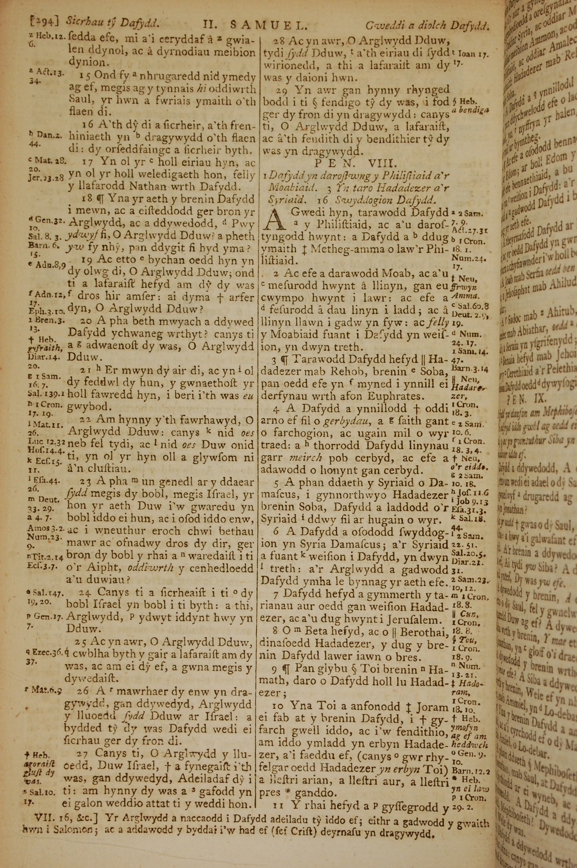 1796年威爾斯文新舊約全書 撒母耳記下 7 章 15 節到 8 章 11 節