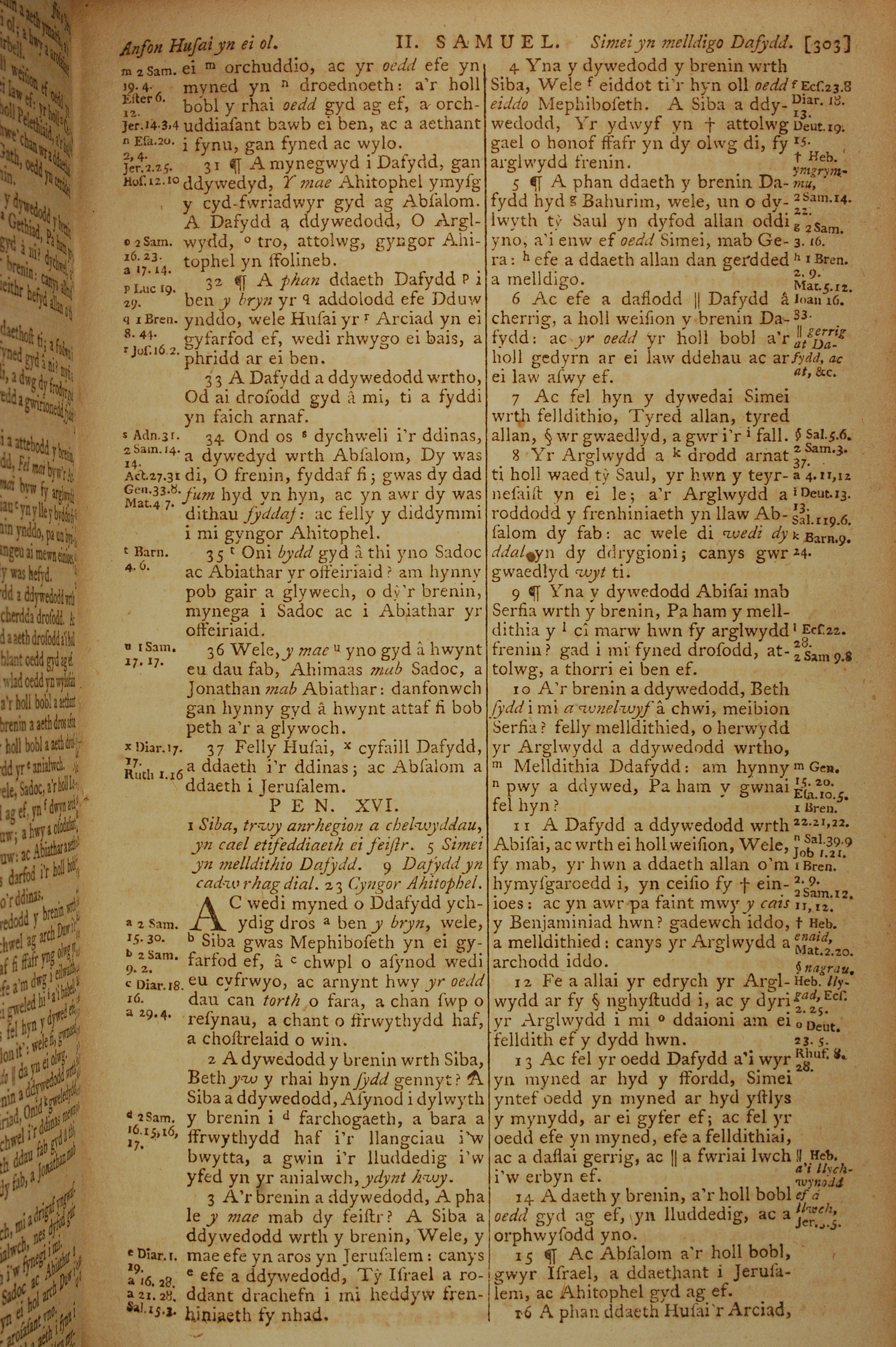 1796年威爾斯文新舊約全書 撒母耳記下 15 章 31 節到 16 章 16 節