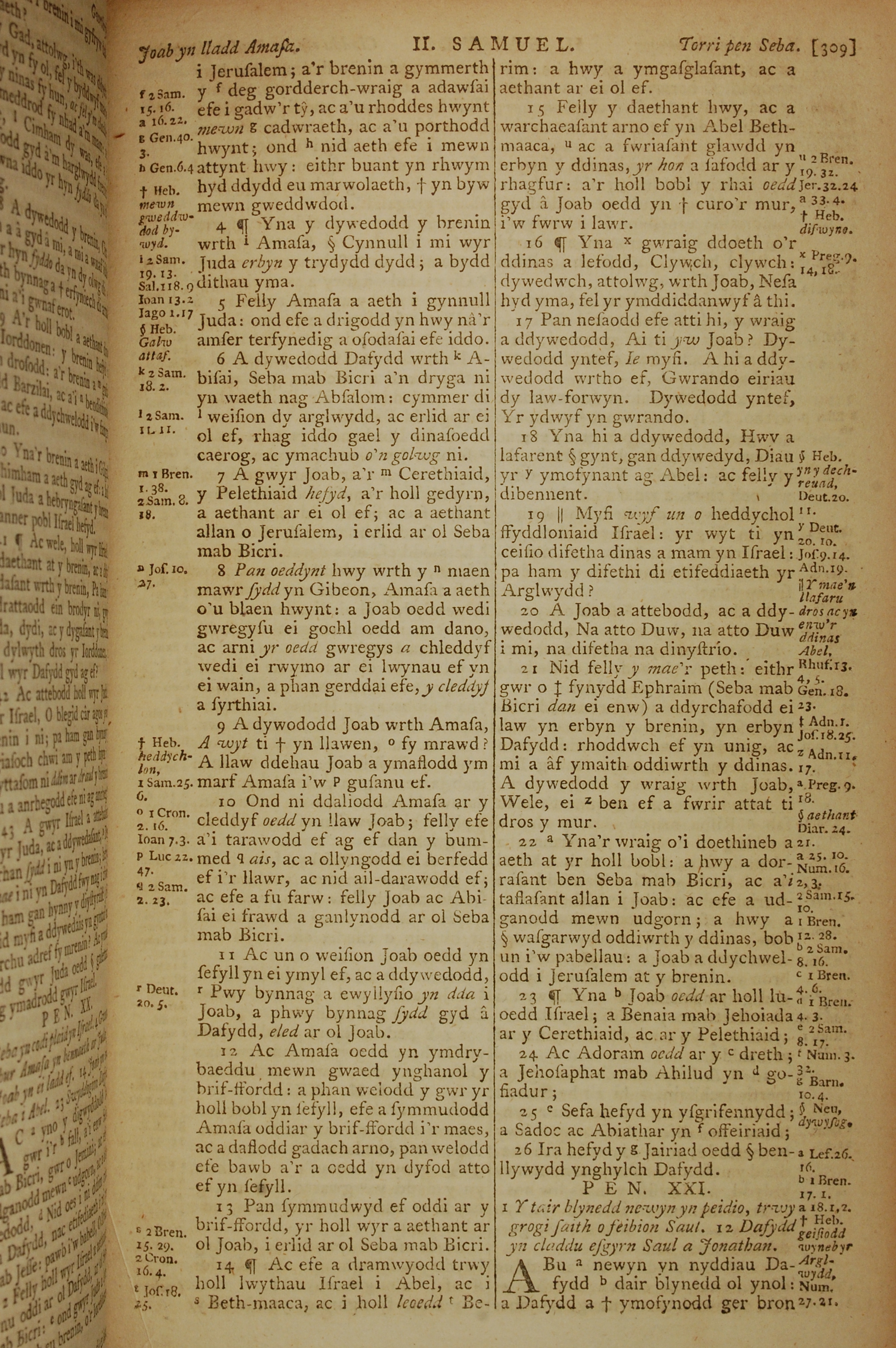 1796年威爾斯文新舊約全書 撒母耳記下 20 章 4 節到 21 章 1 節