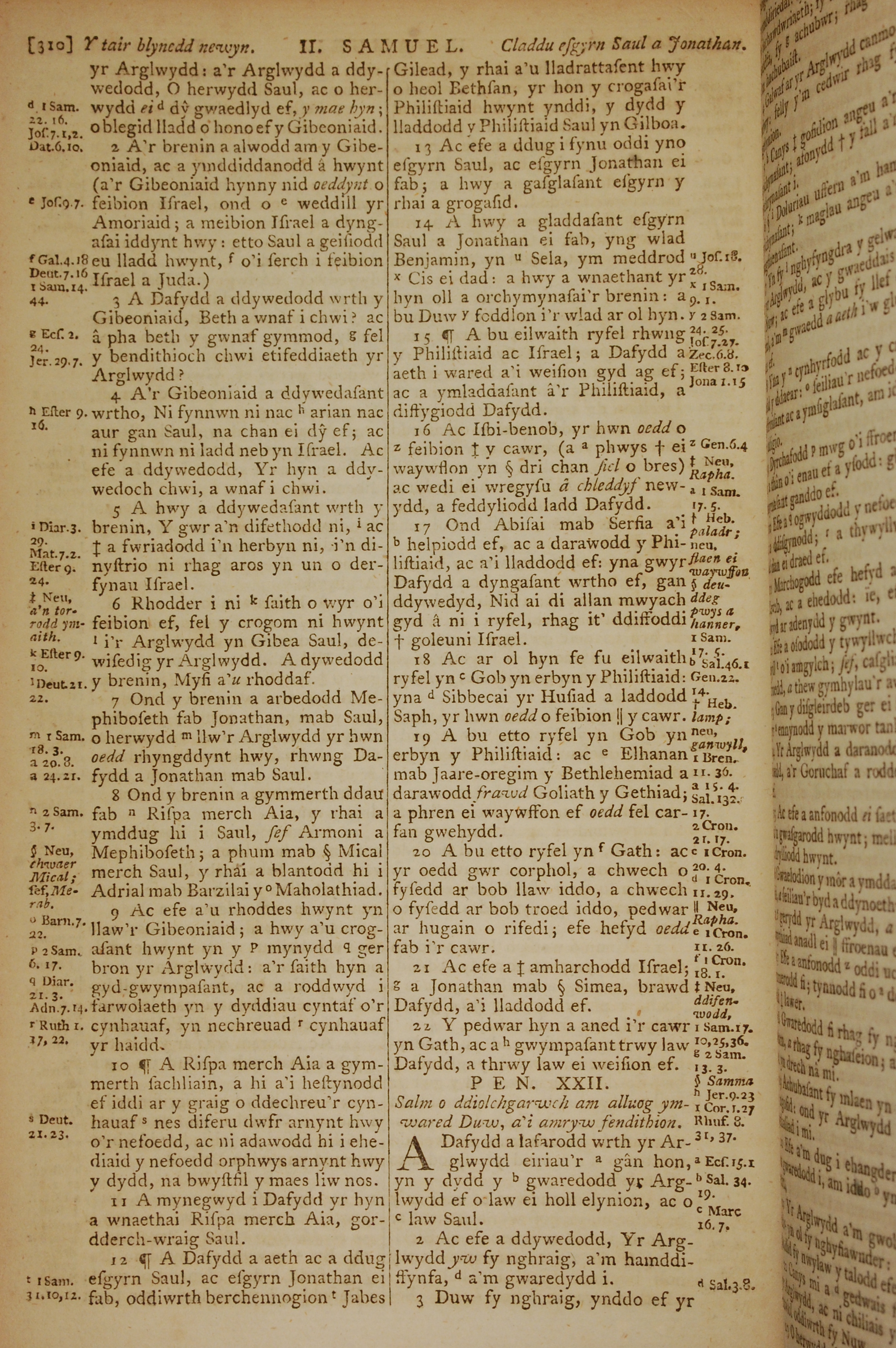 1796年威爾斯文新舊約全書 撒母耳記下 21 章 2 節到 22 章 3 節