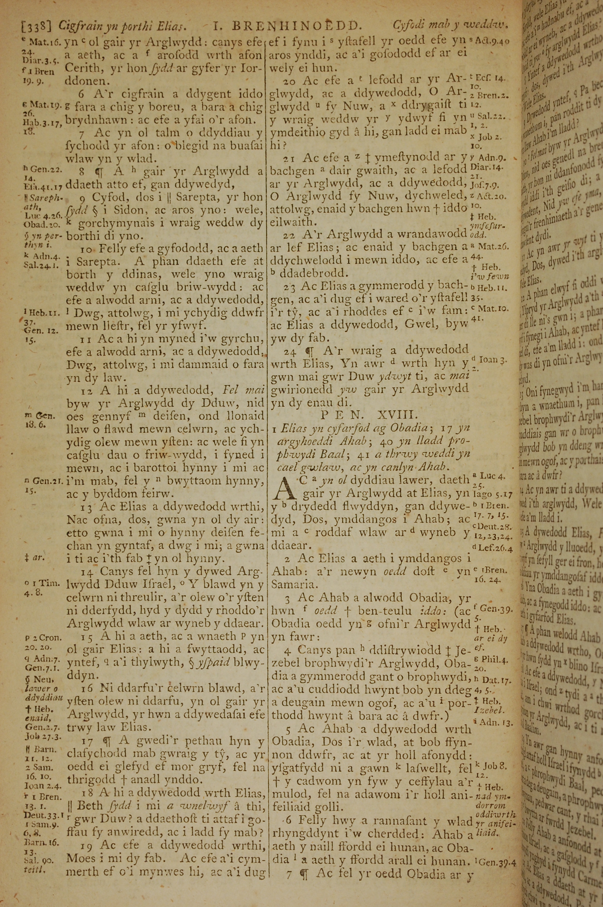 1796年威爾斯文新舊約全書 列王紀上 17 章 6 節到 18 章 7 節