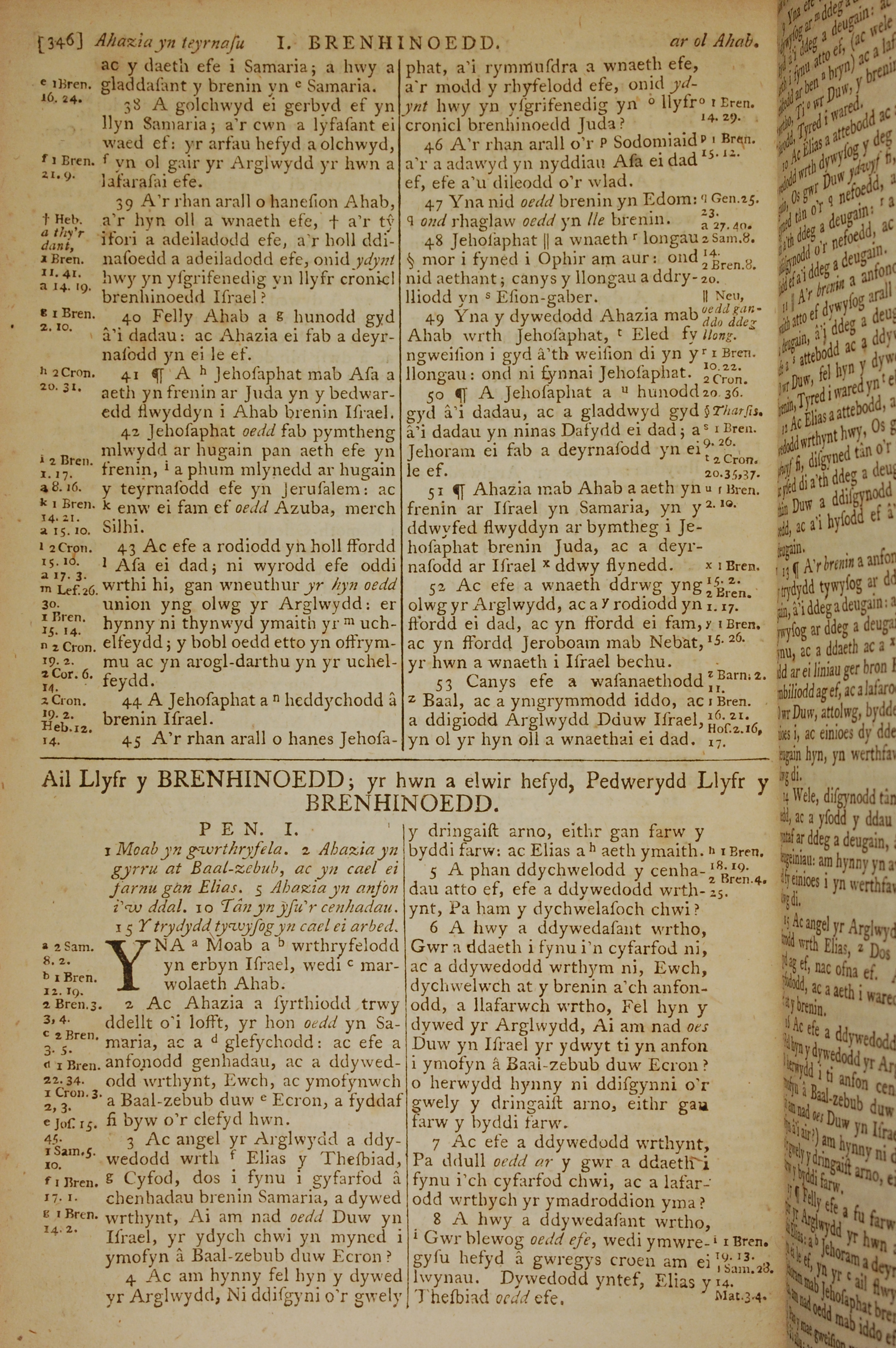 1796年威爾斯文新舊約全書 列王紀下 1 章 1 節到 1 章 8 節