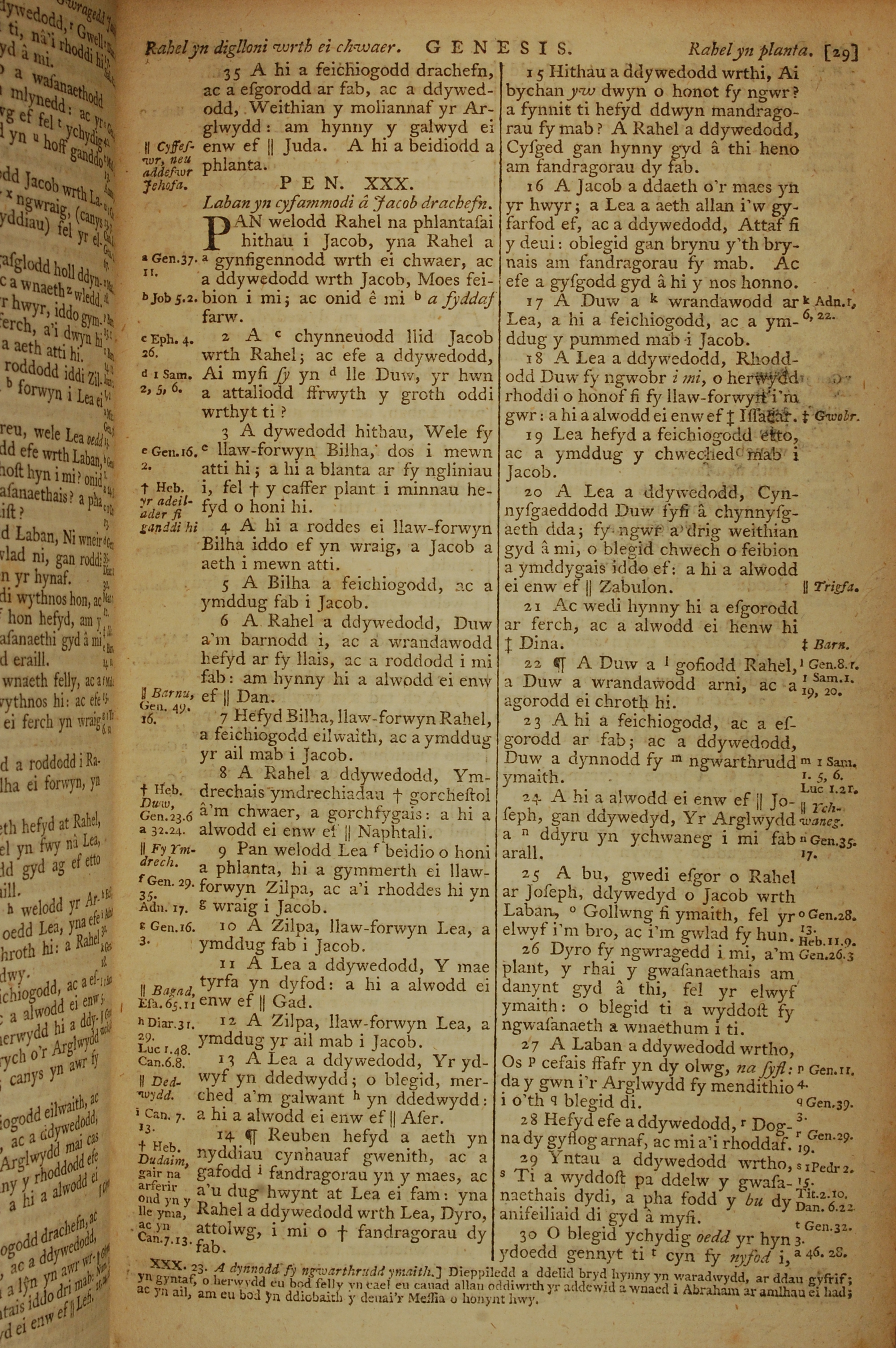 1796年威爾斯文新舊約全書 創世記 29 章 35 節到 30 章 30 節