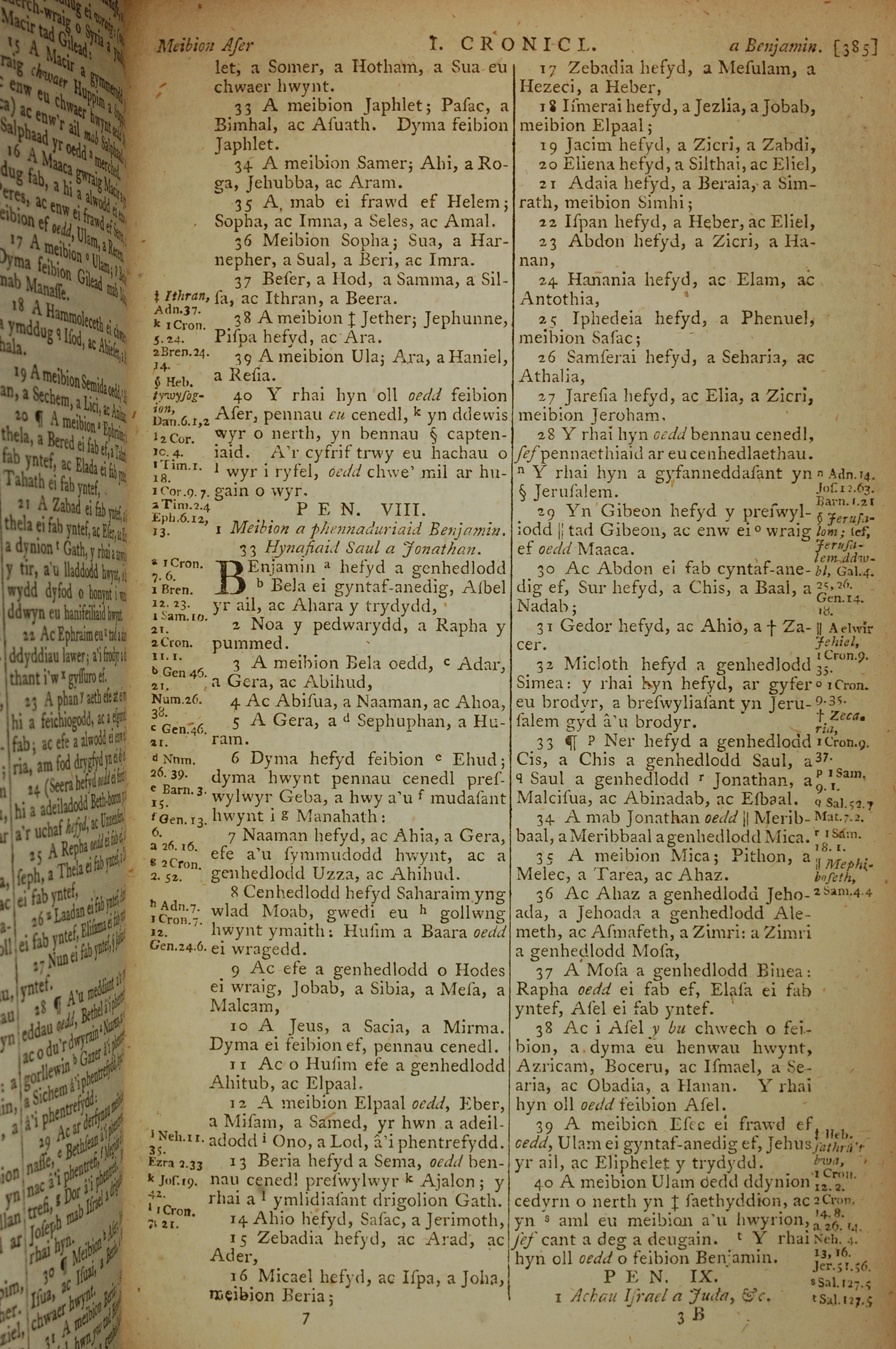1796年威爾斯文新舊約全書 歷代志上 7 章 33 節到 8 章 40 節