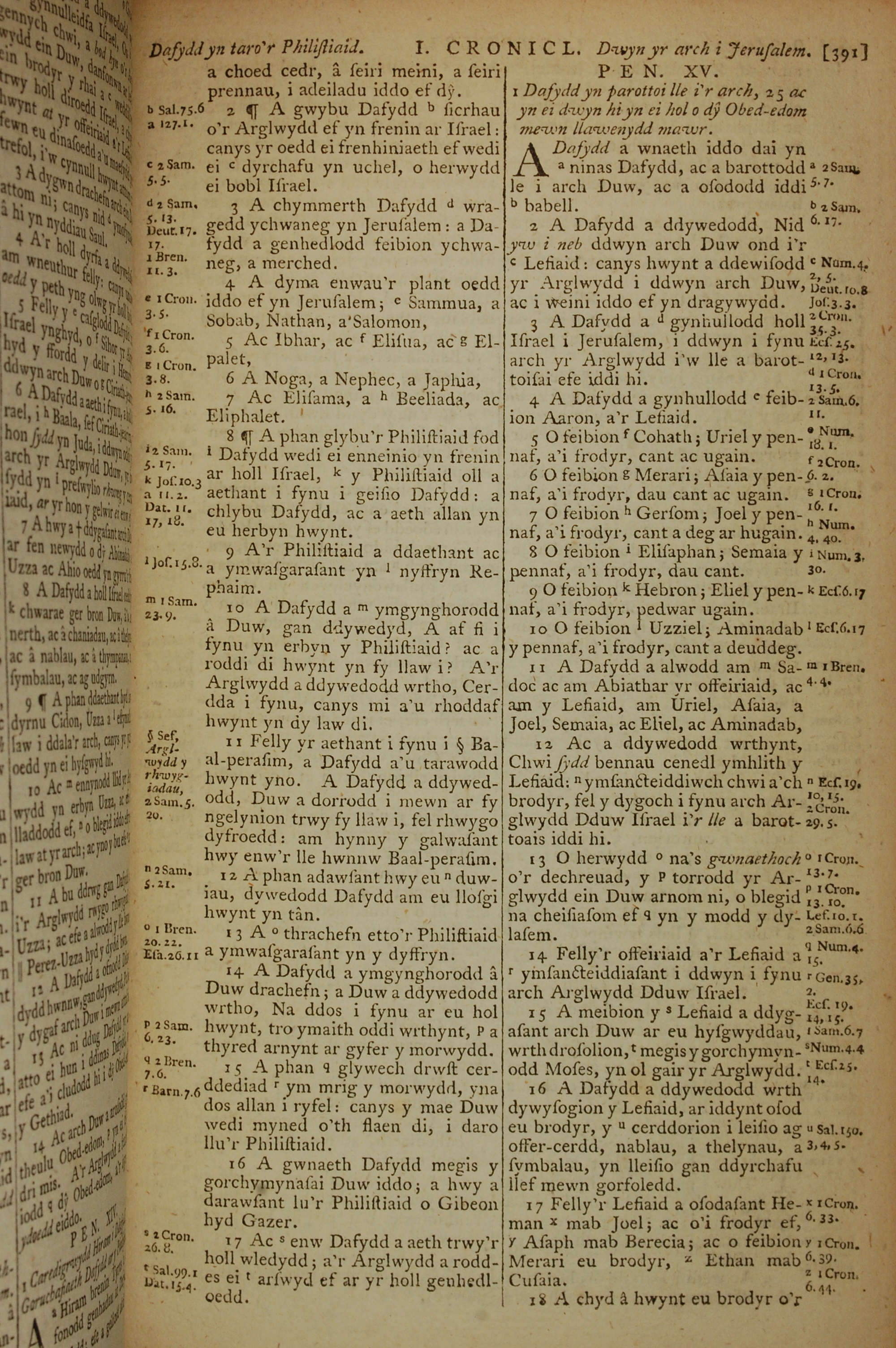 1796年威爾斯文新舊約全書 歷代志上 14 章 2 節到 15 章 18 節