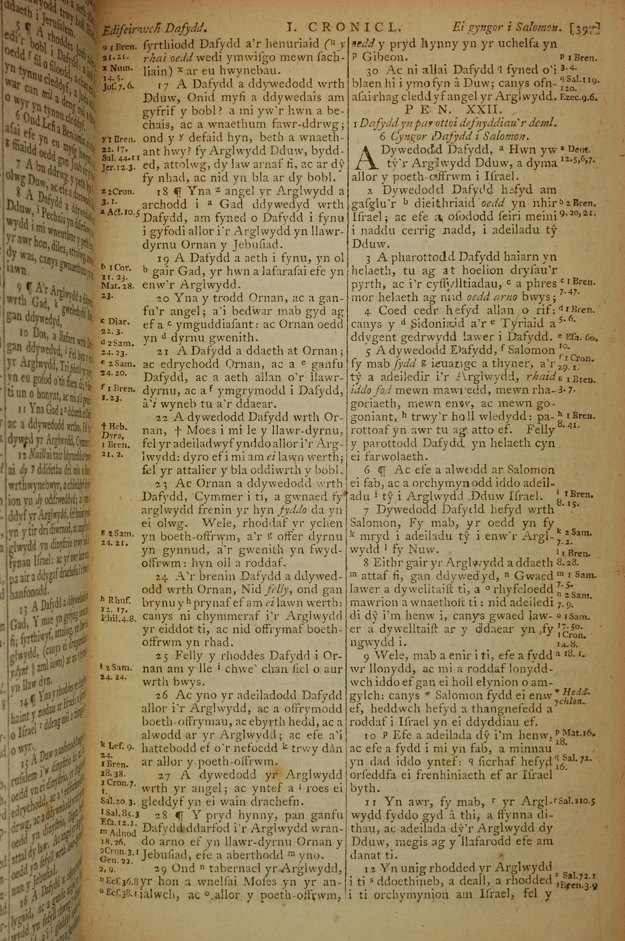 1796年威爾斯文新舊約全書 歷代志上 21 章 17 節到 22 章 12 節