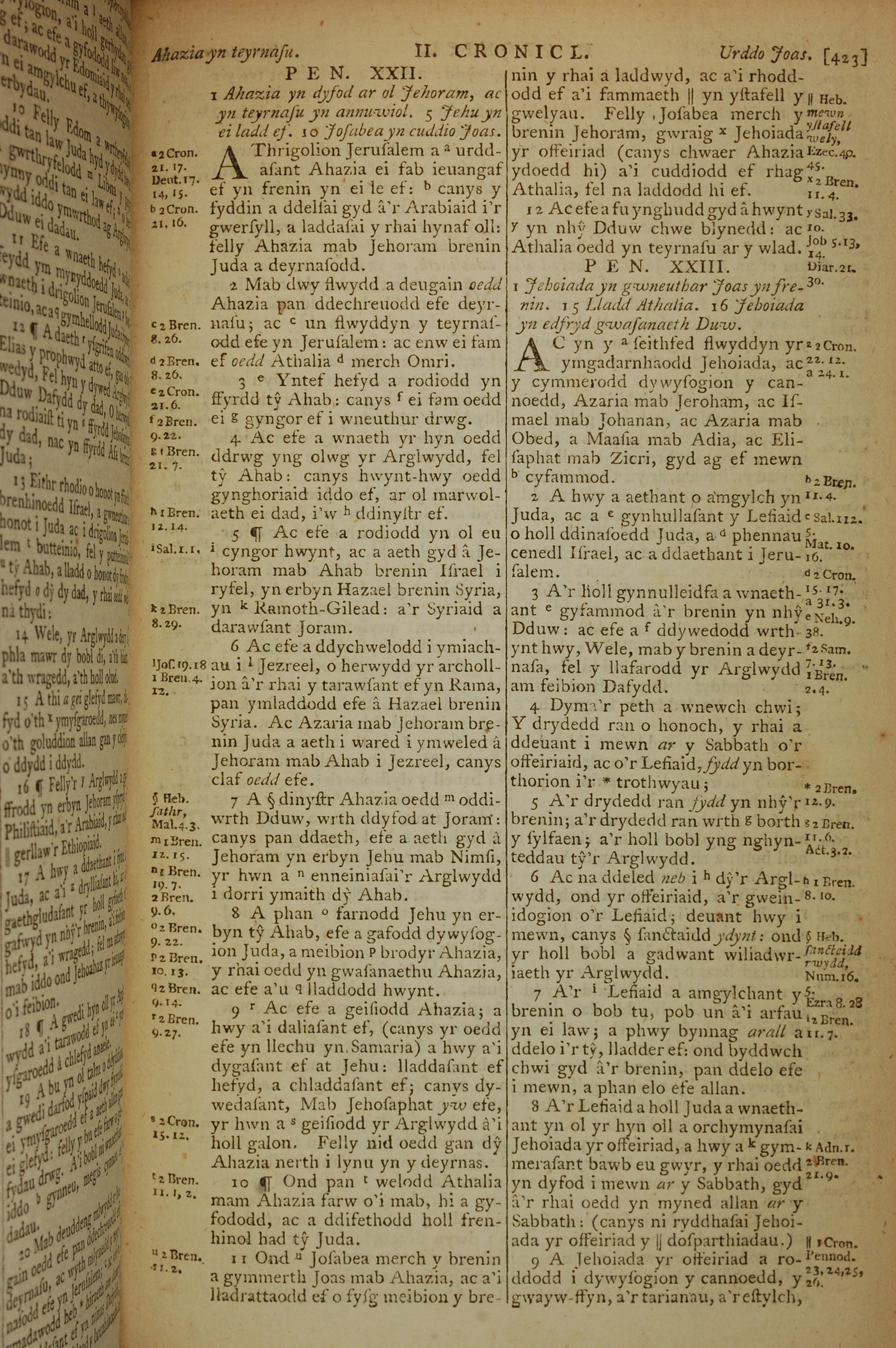 1796年威爾斯文新舊約全書 歷代志下 22 章 1 節到 23 章 9 節