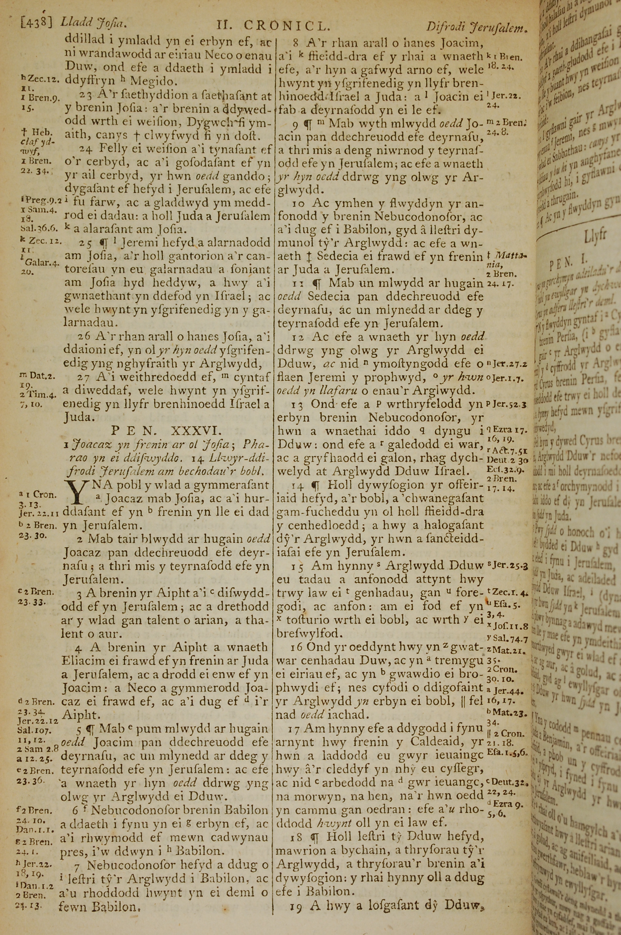1796年威爾斯文新舊約全書 歷代志下 35 章 23 節到 36 章 19 節