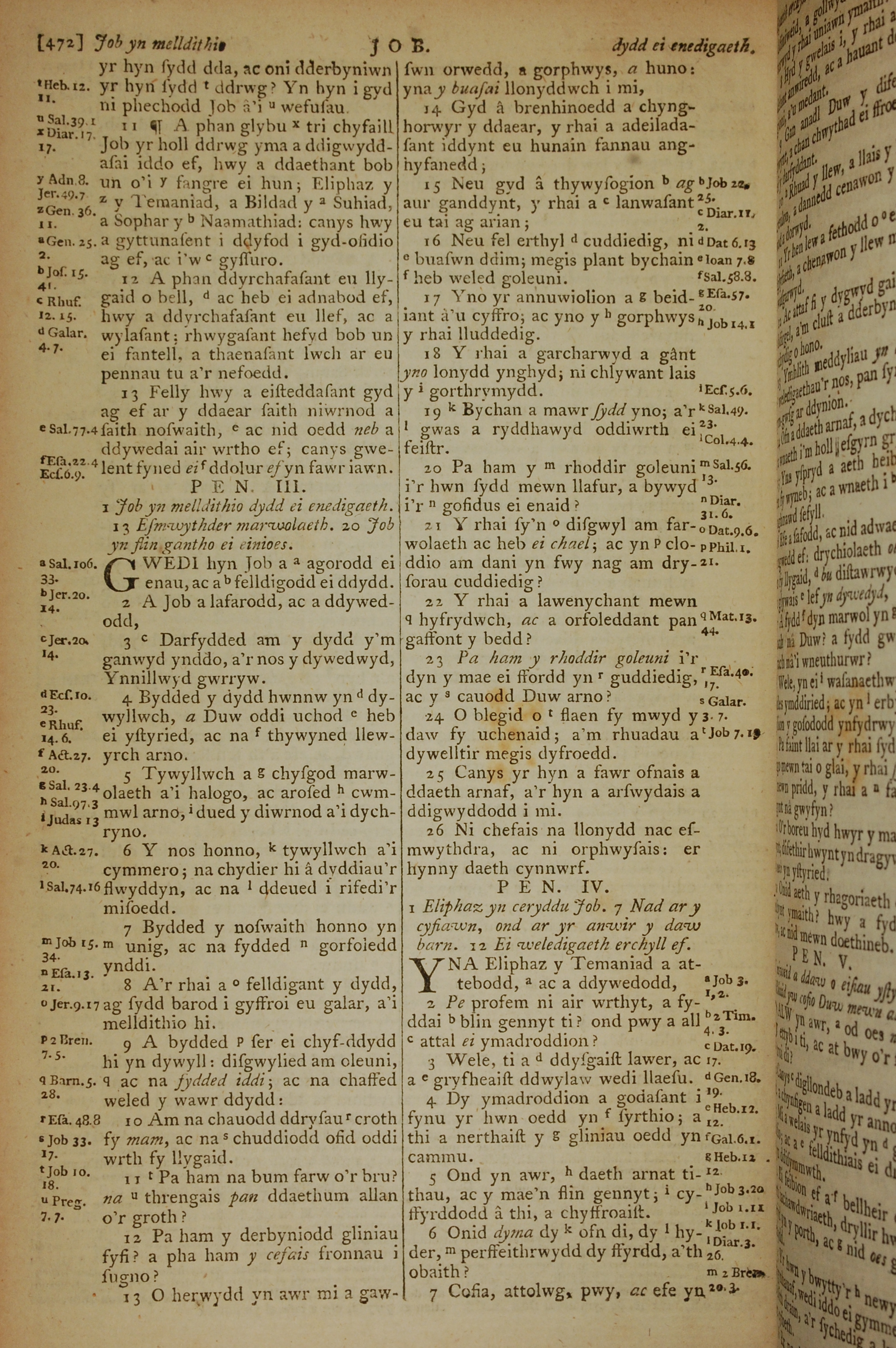 1796年威爾斯文新舊約全書 約伯記 2 章 11 節到 4 章 7 節