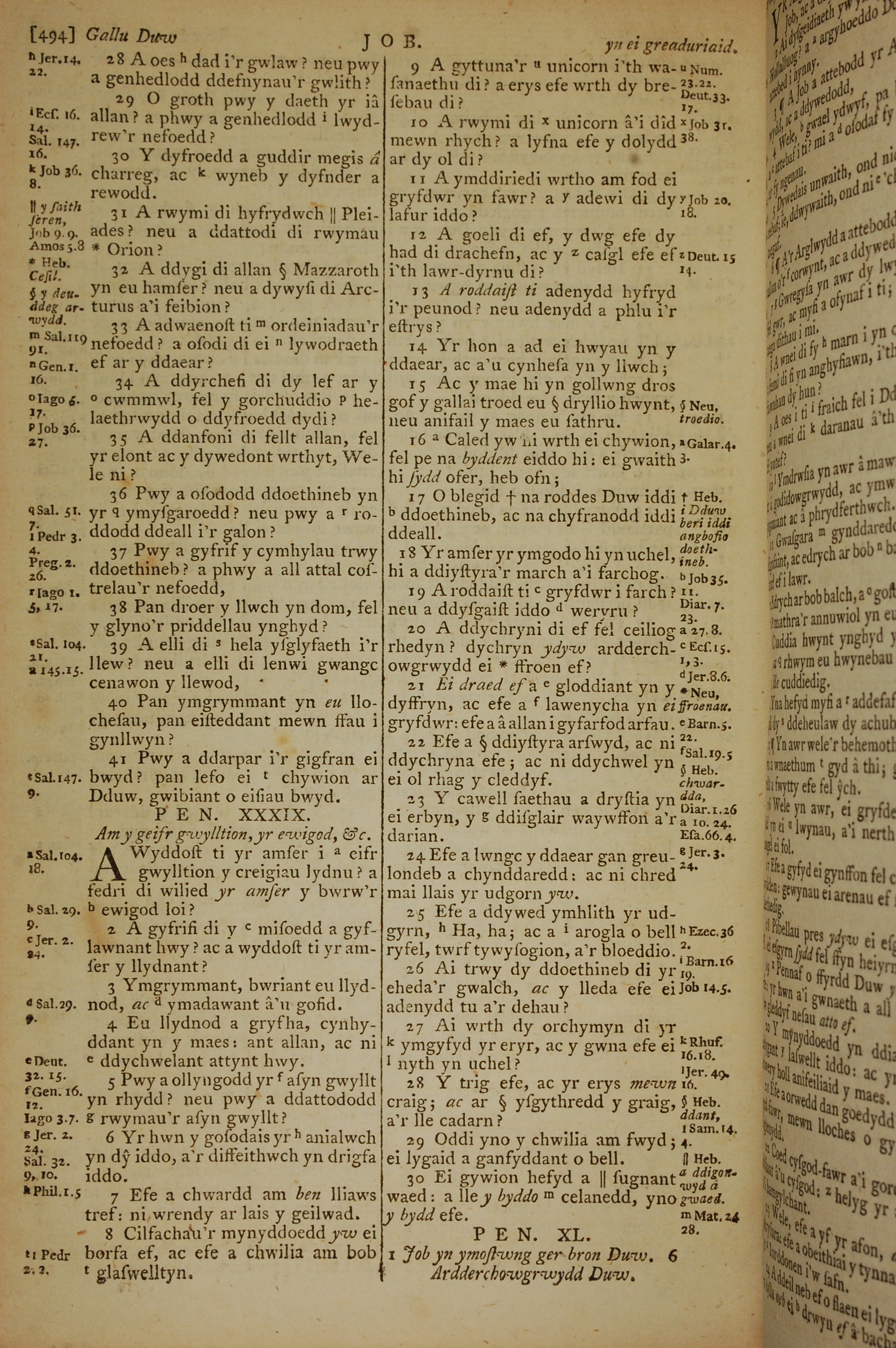 1796年威爾斯文新舊約全書 約伯記 38 章 28 節到 39 章 30 節