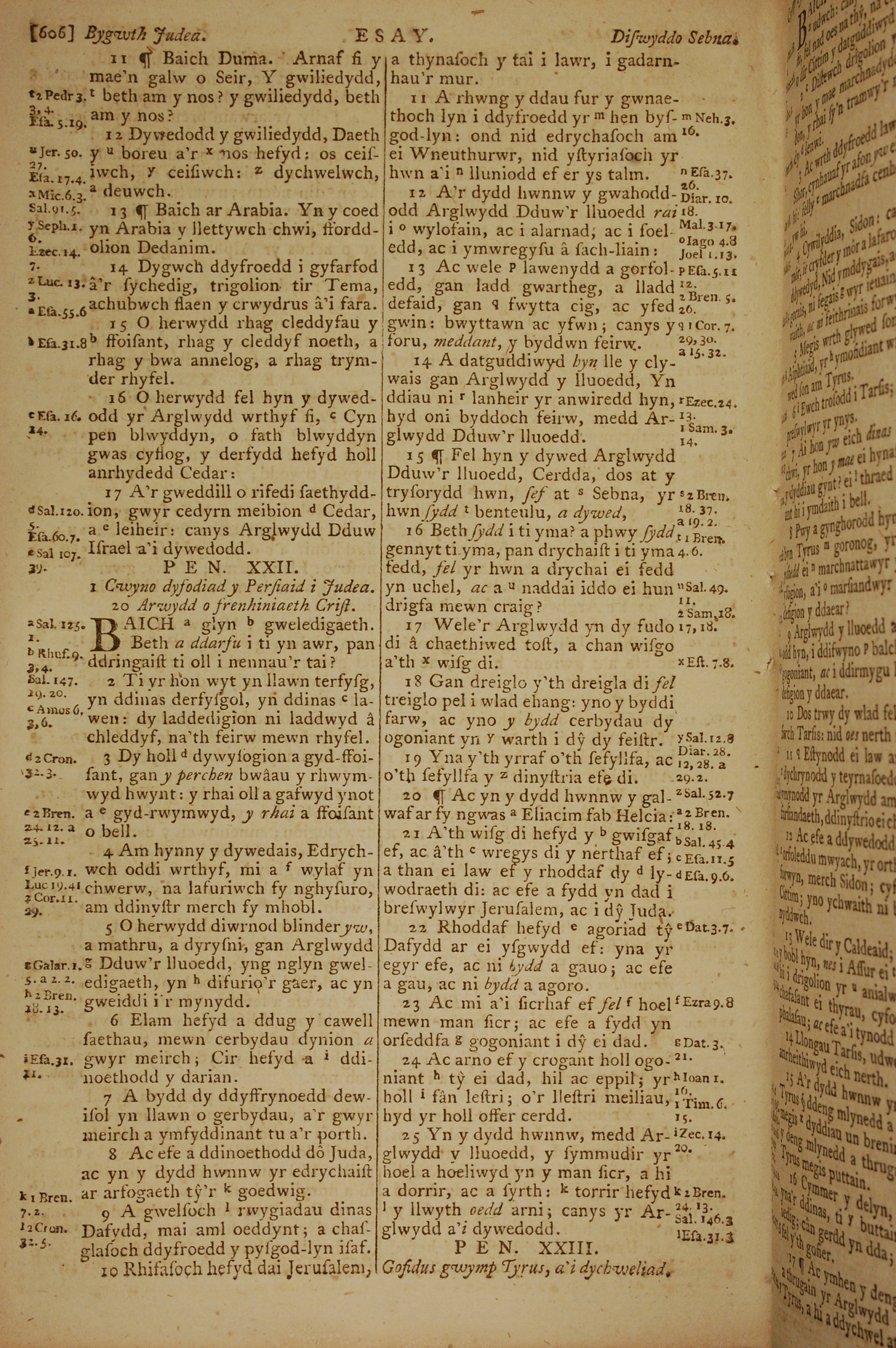 1796年威爾斯文新舊約全書 以賽亞書 21 章 11 節到 22 章 25 節