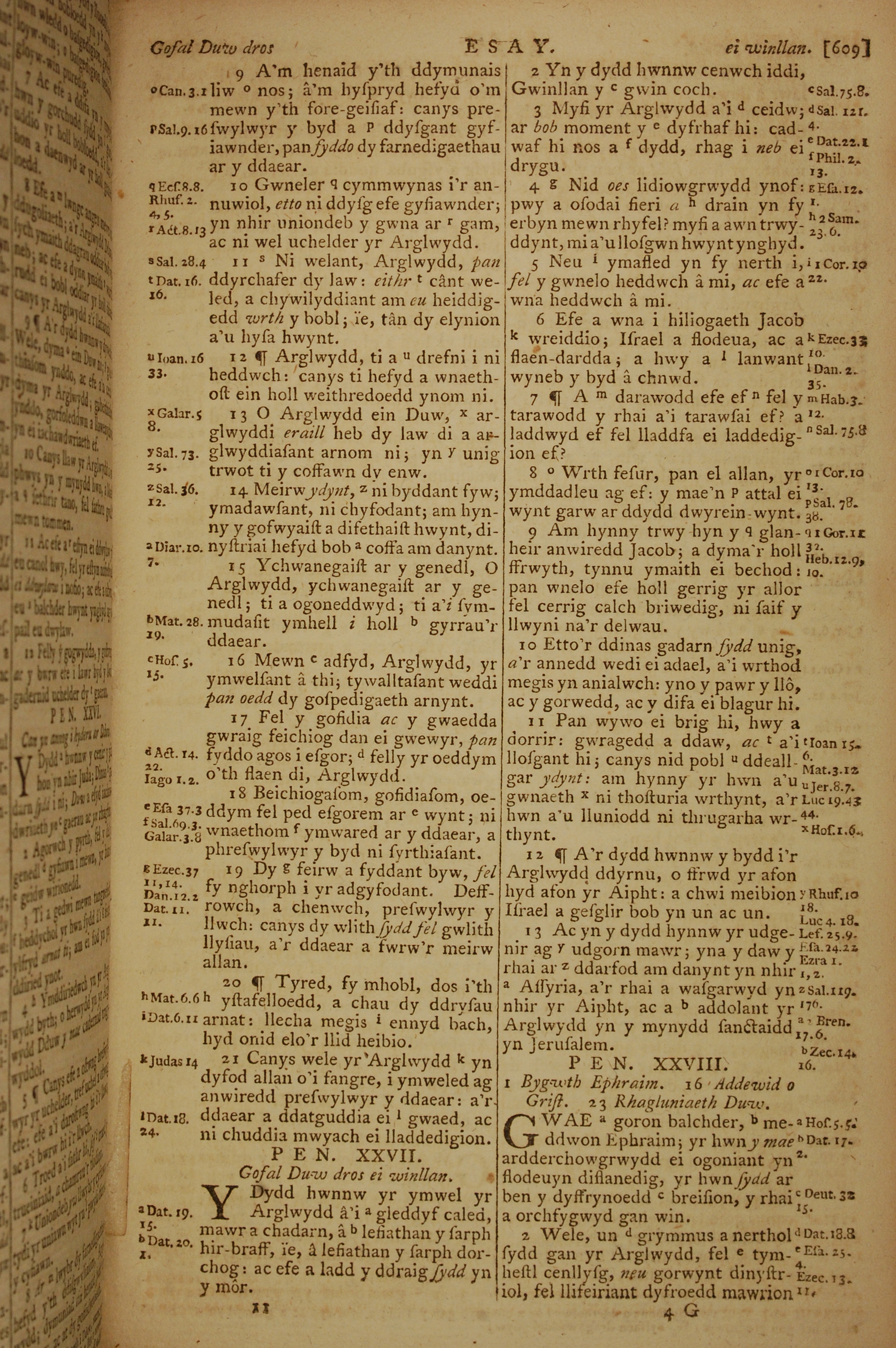 1796年威爾斯文新舊約全書 以賽亞書 26 章 9 節到 28 章 2 節