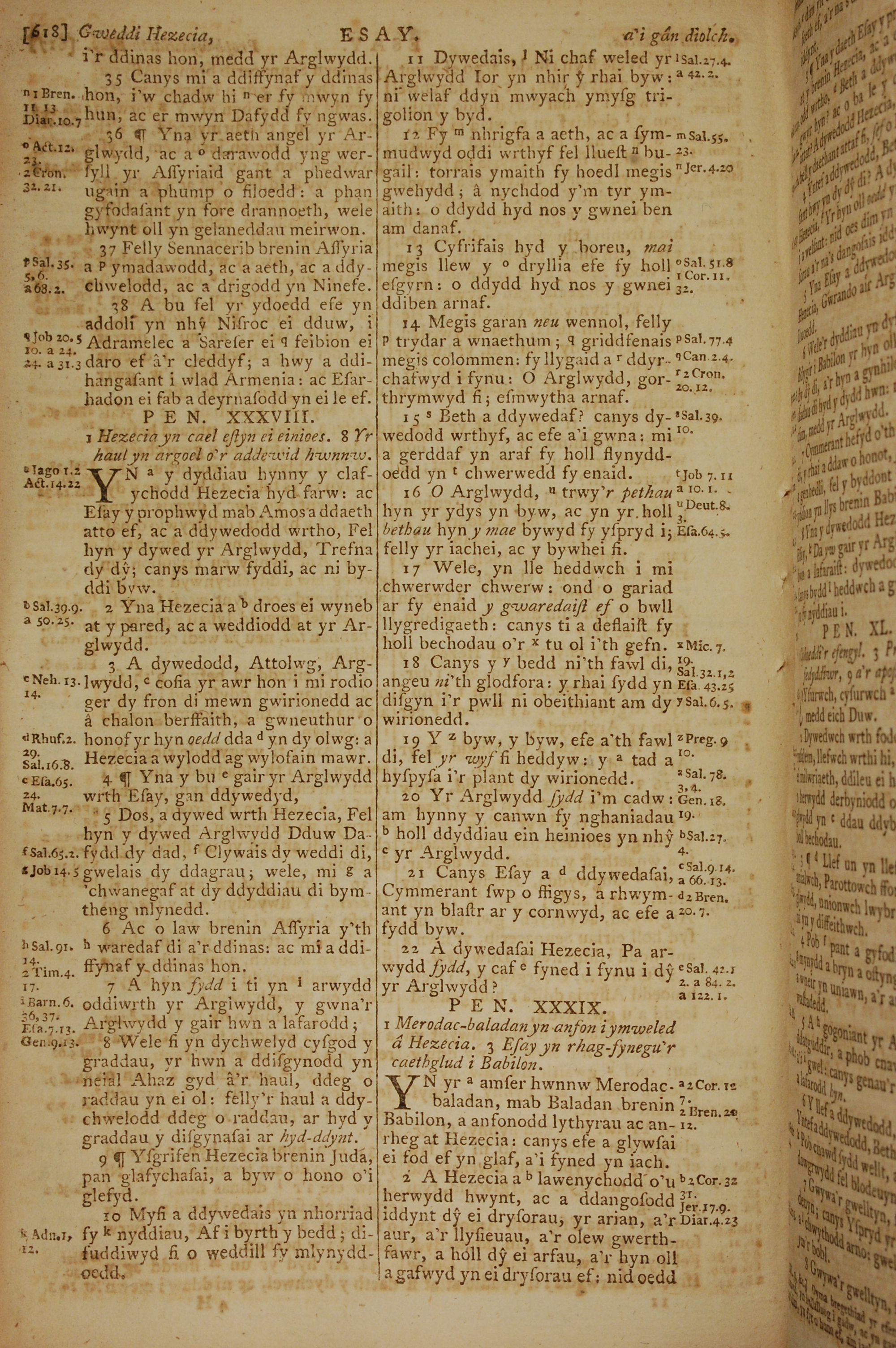 1796年威爾斯文新舊約全書 以賽亞書 37 章 35 節到 39 章 2 節