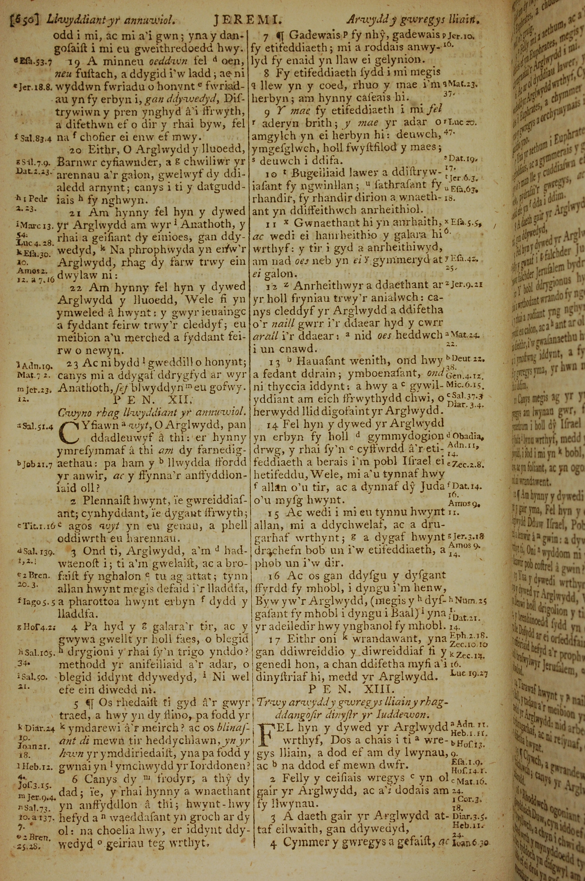 1796年威爾斯文新舊約全書 耶利米書 11 章 19 節到 13 章 4 節