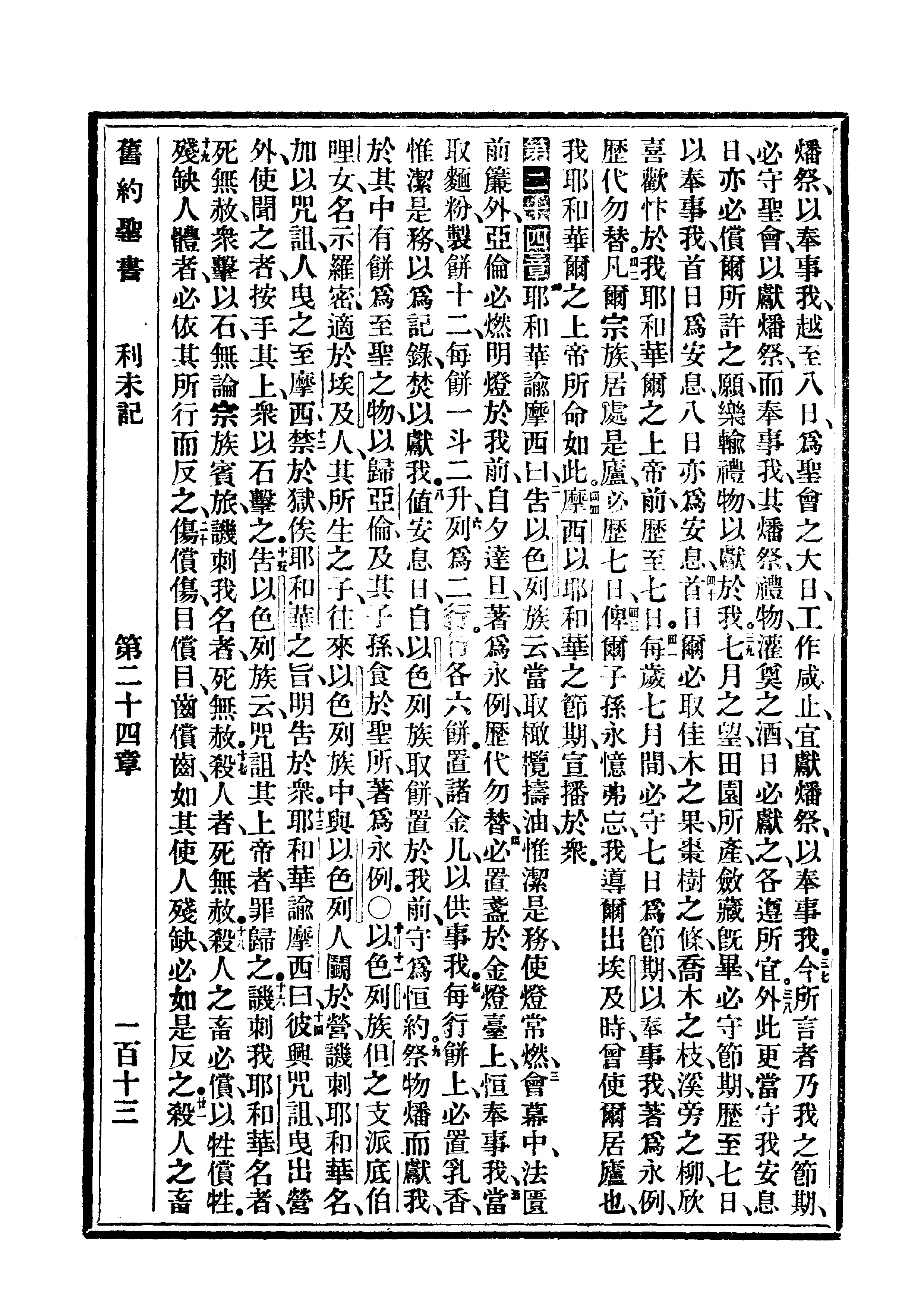 1910年委辦譯本 利未記 23 章 37 節到 24 章 21 節