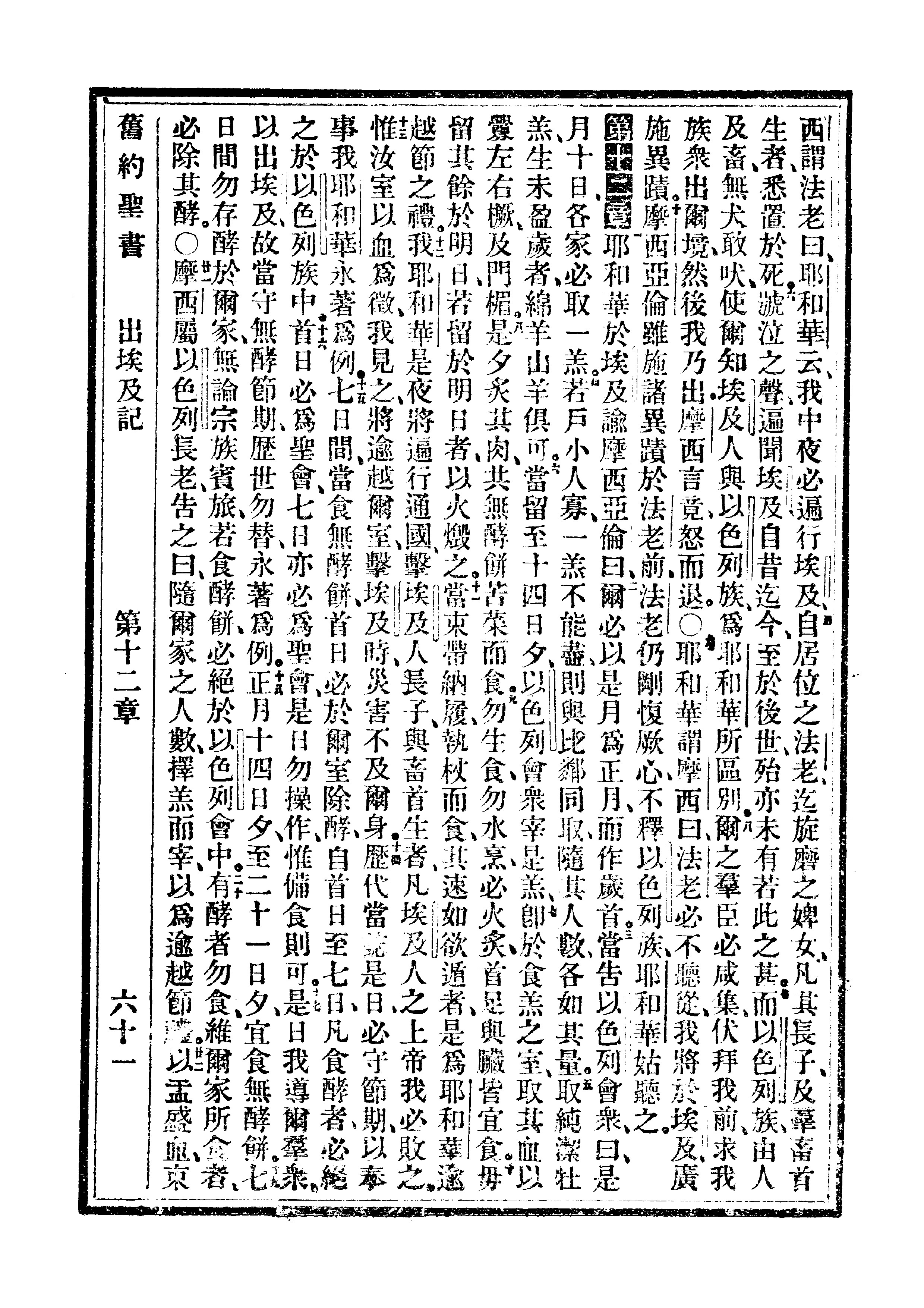 1910年委辦譯本 出埃及記 11 章 4 節到 12 章 22 節