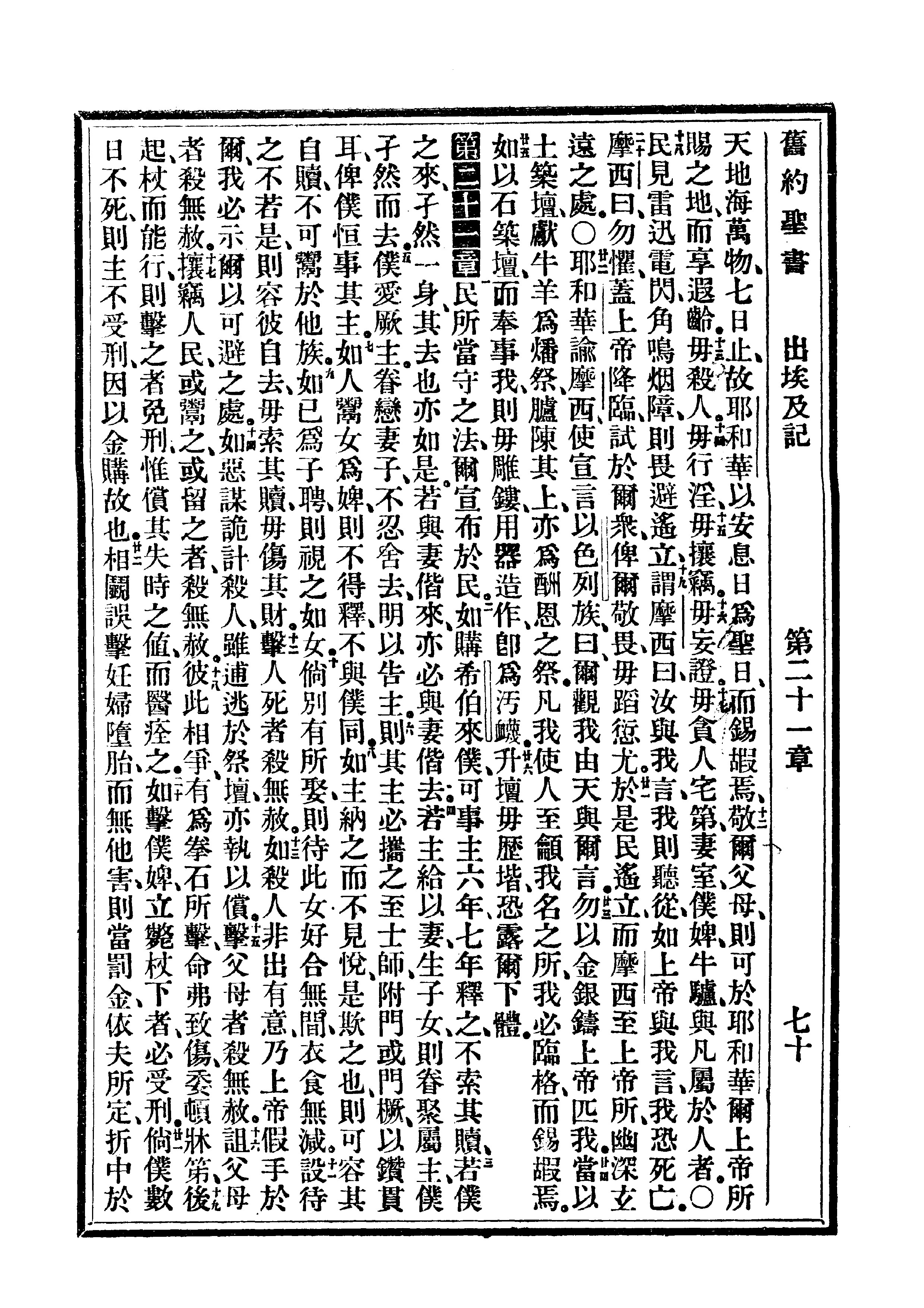 1910年委辦譯本 出埃及記 20 章 12 節到 21 章 22 節