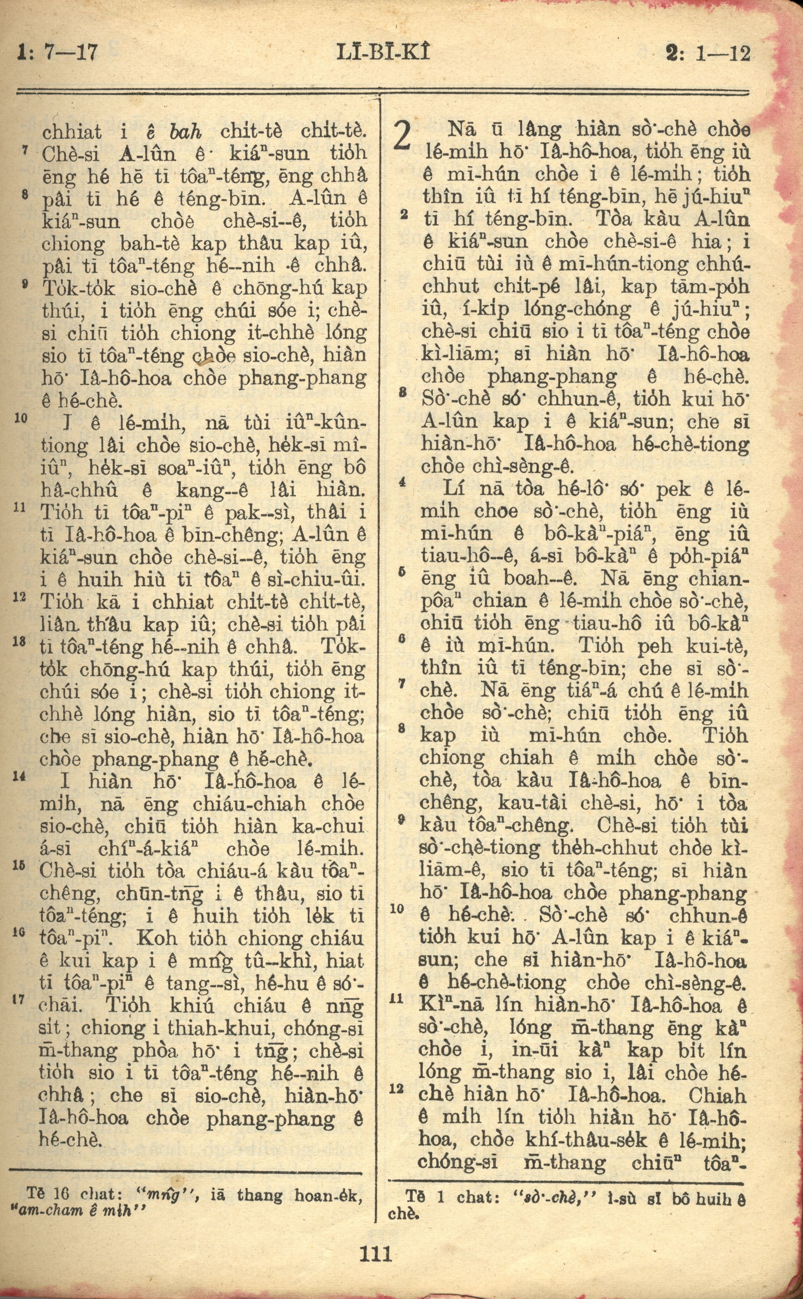 1957年巴克禮全羅台語聖經串珠版 利未記 1 章 7 節到 2 章 12 節