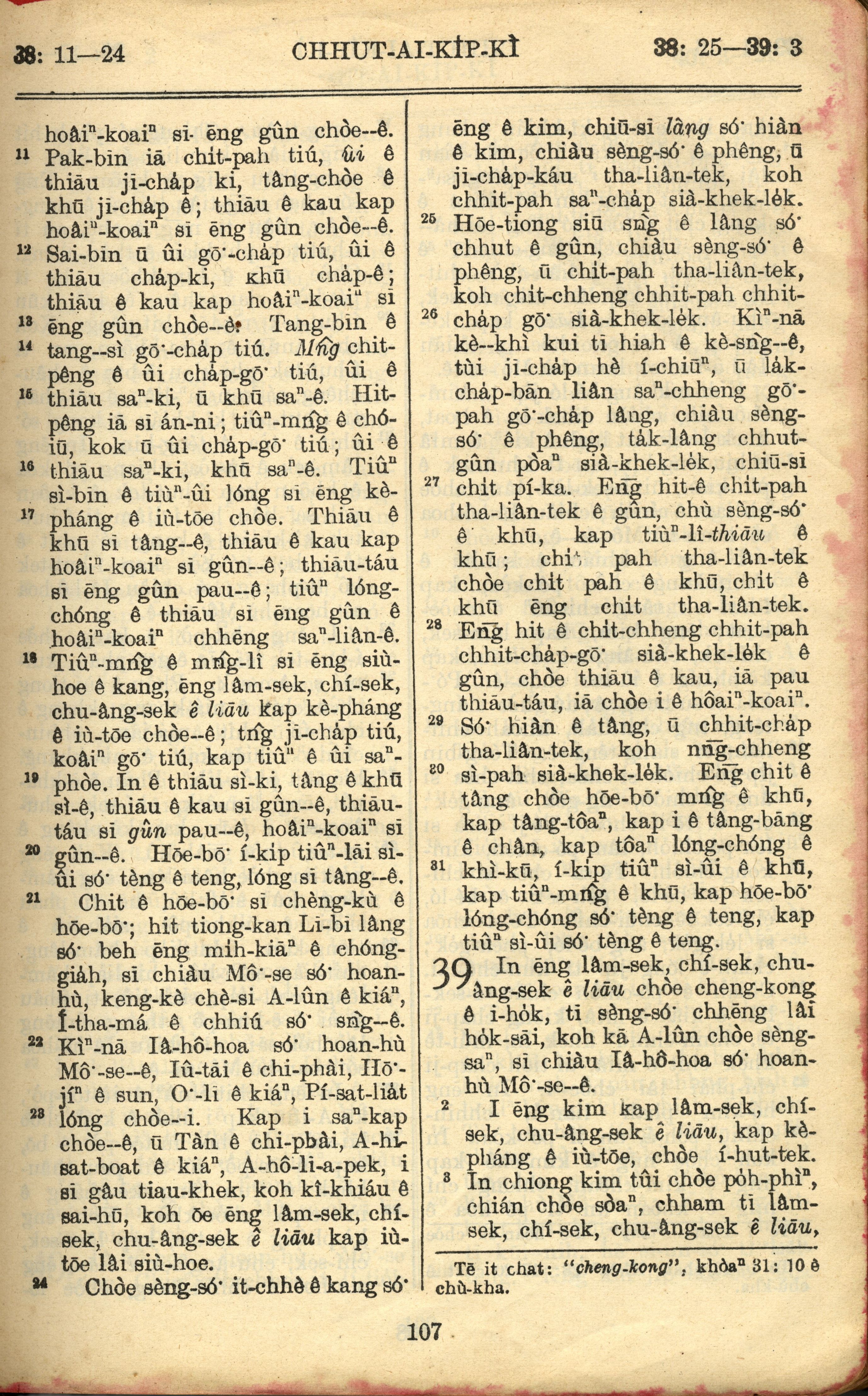 1957年巴克禮全羅台語聖經串珠版 出埃及記 38 章 11 節到 39 章 3 節