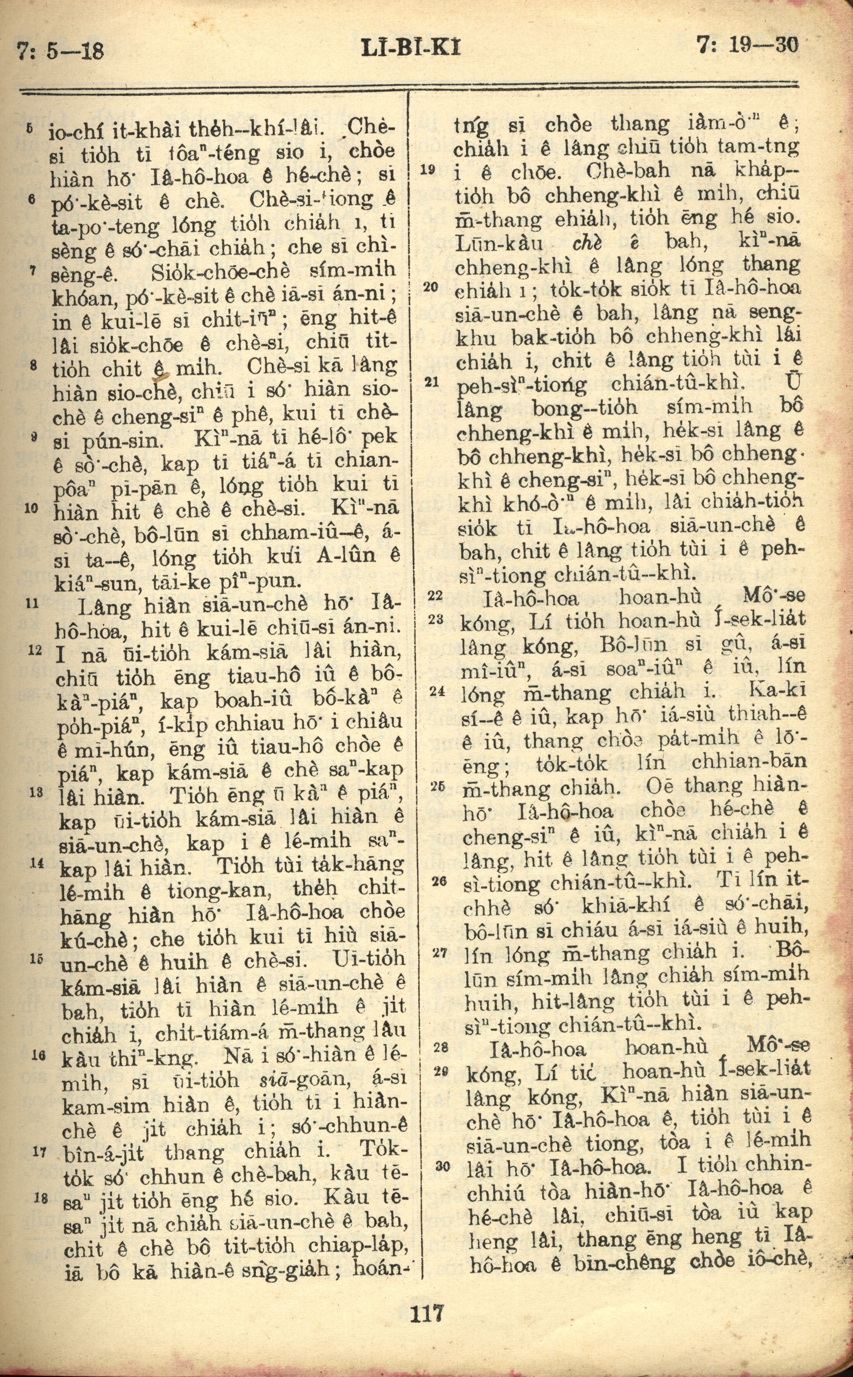1957年巴克禮全羅台語聖經串珠版 利未記 7 章 5 節到 7 章 30 節