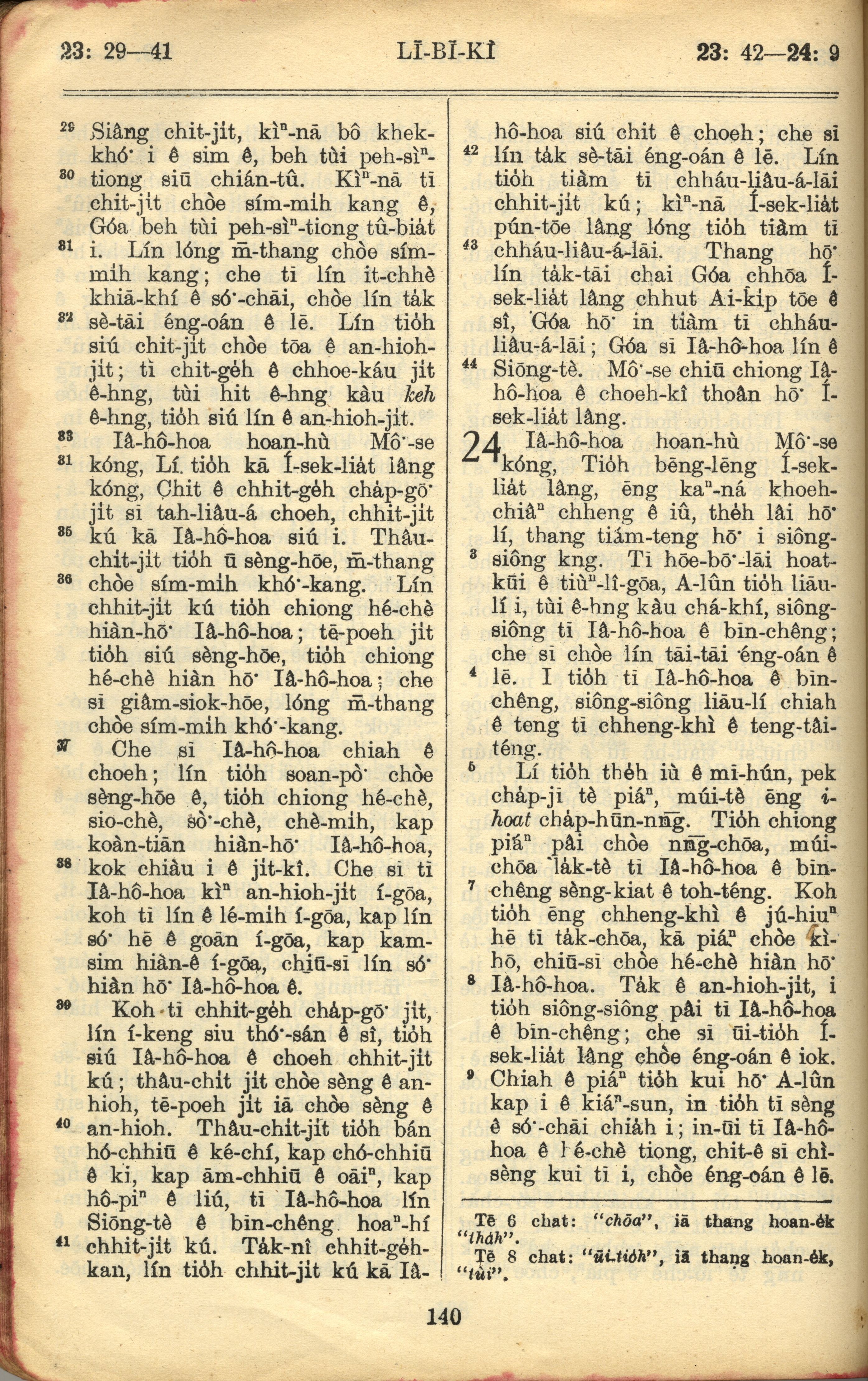 1957年巴克禮全羅台語聖經串珠版 利未記 23 章 29 節到 24 章 9 節
