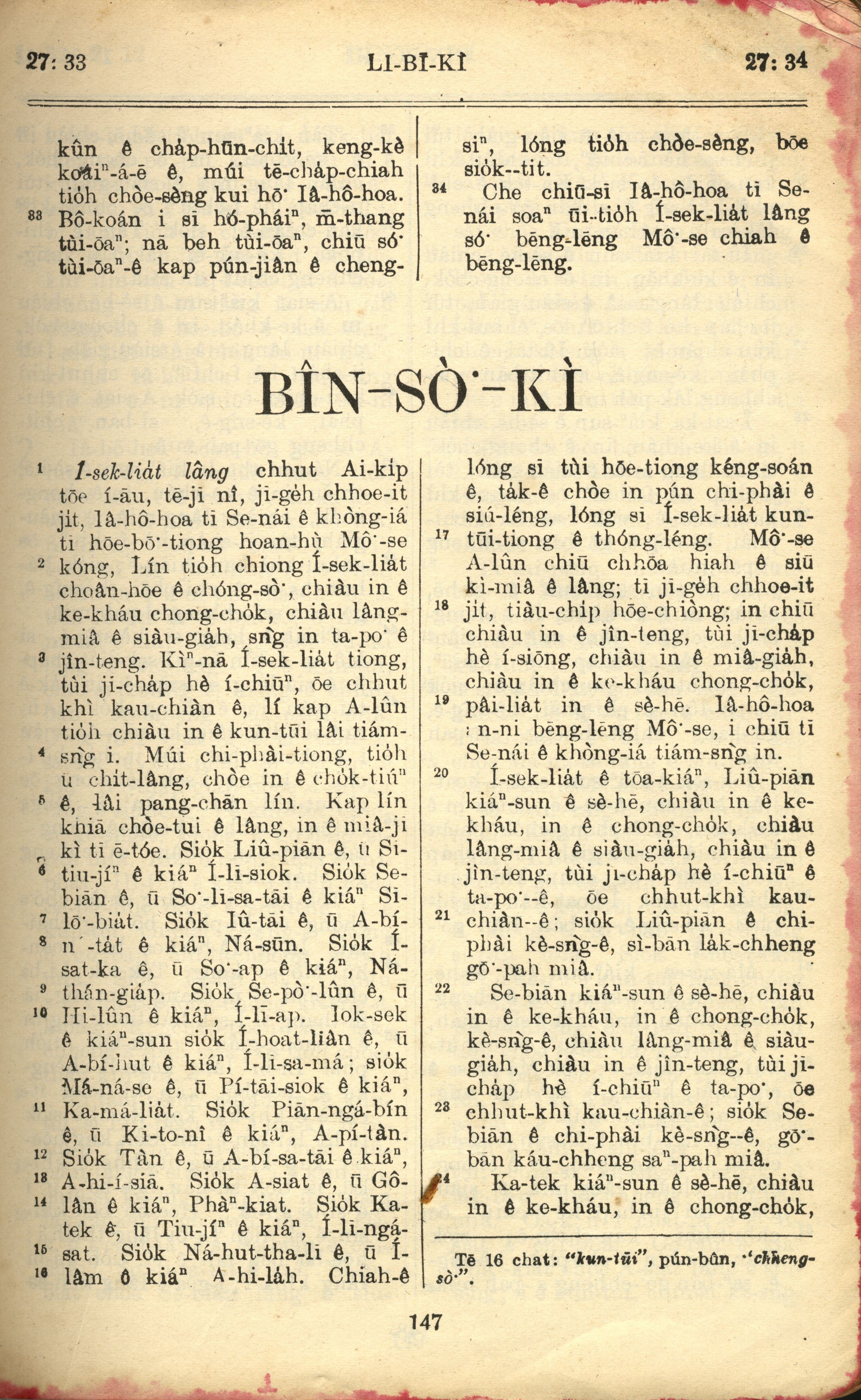 1957年巴克禮全羅台語聖經串珠版 利未記 27 章 33 節到 27 章 34 節