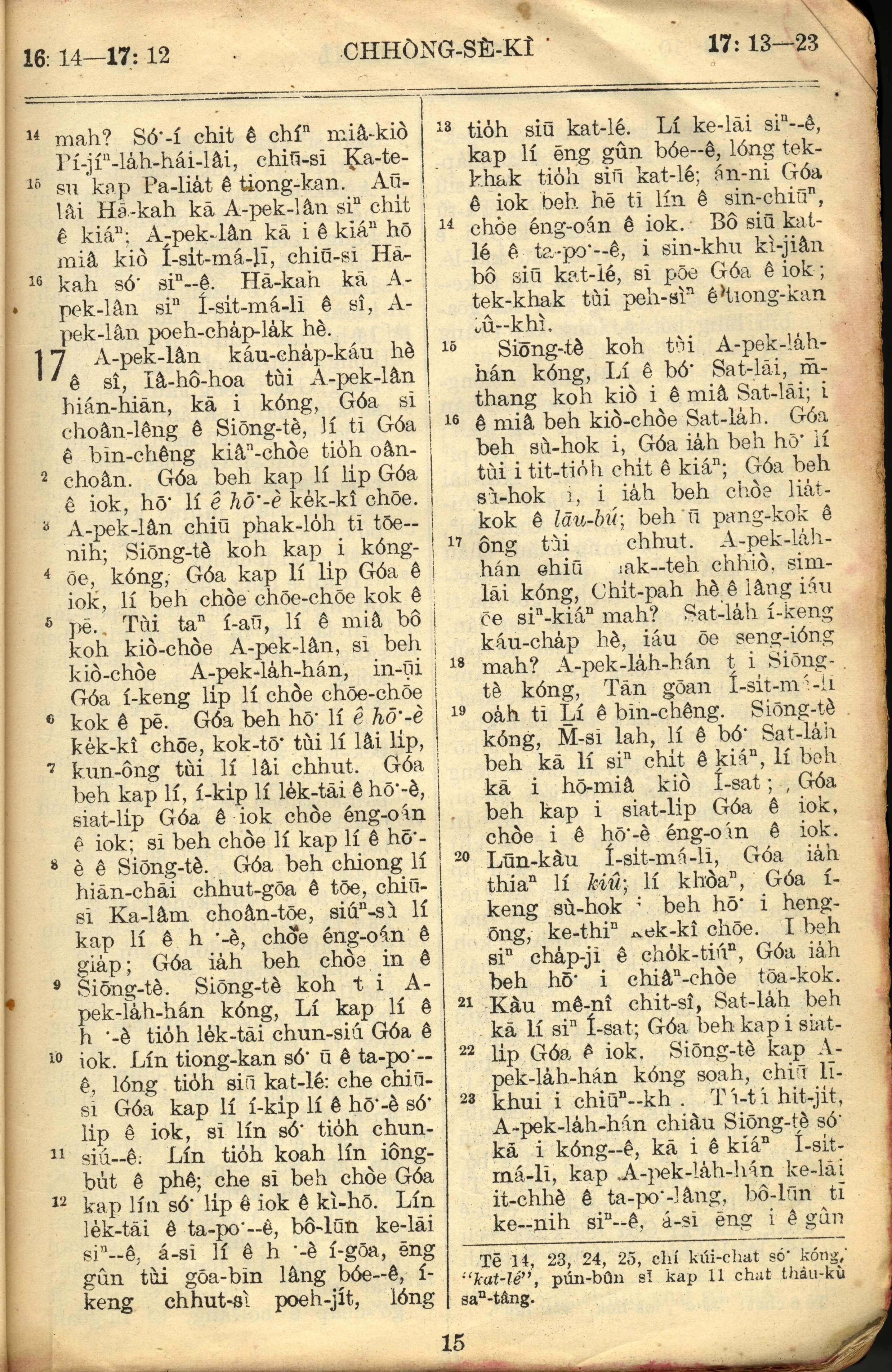 1957年巴克禮全羅台語聖經串珠版 創世記 16 章 14 節到 17 章 23 節
