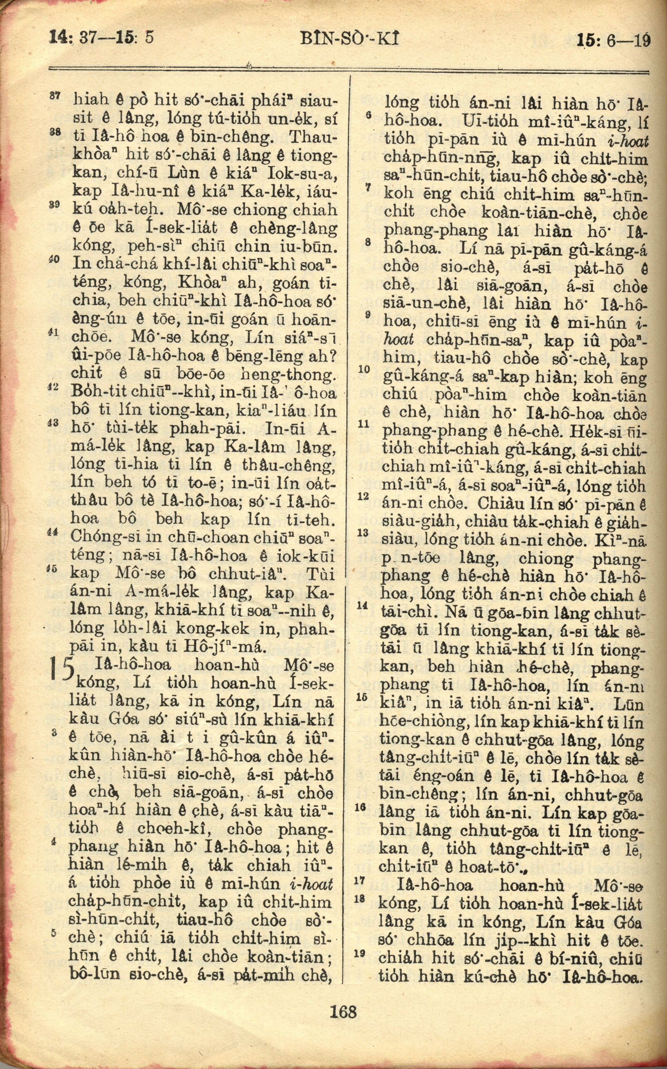 1957年巴克禮全羅台語聖經串珠版 民數記 14 章 37 節到 15 章 19 節