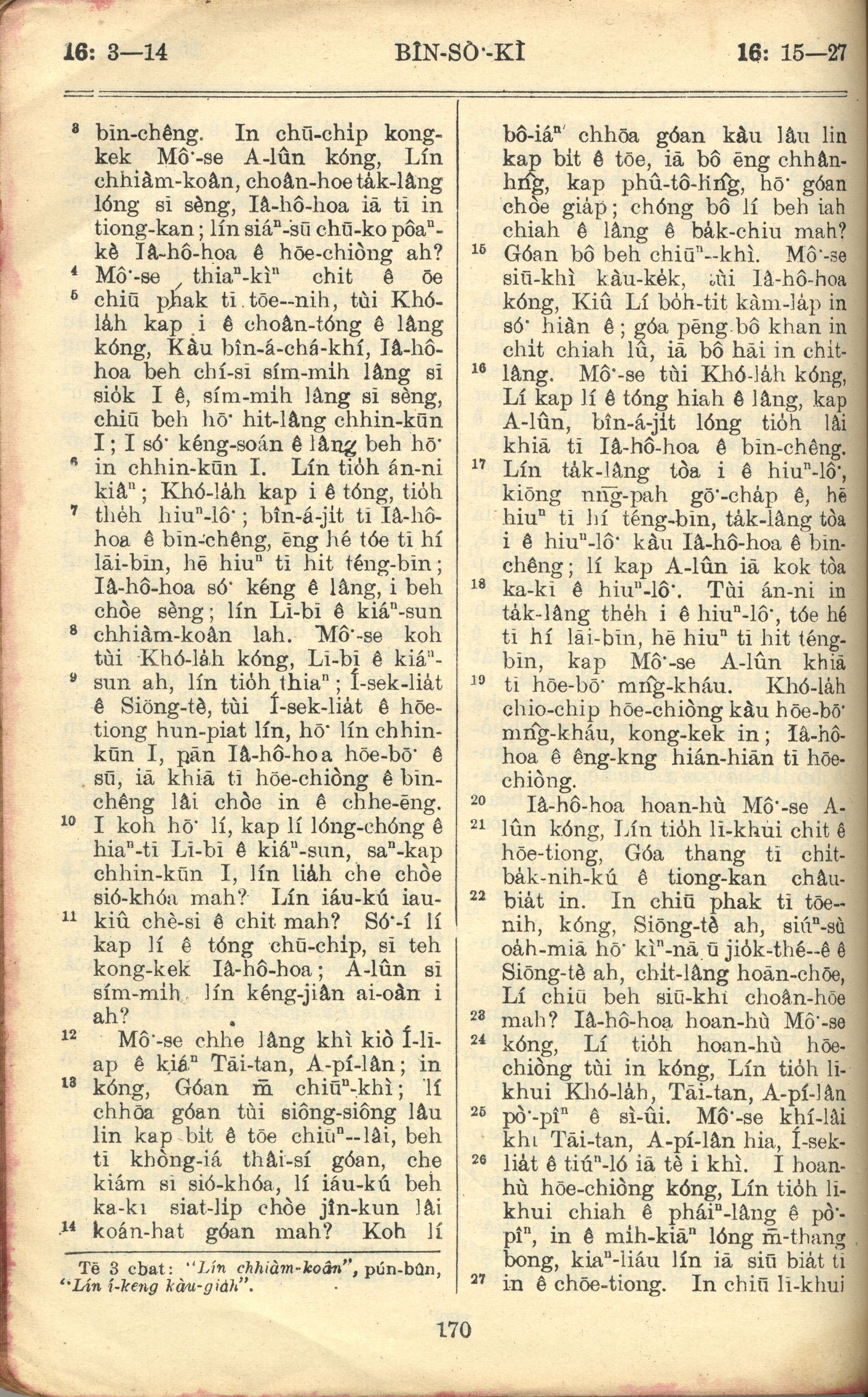 1957年巴克禮全羅台語聖經串珠版 民數記 16 章 3 節到 16 章 27 節