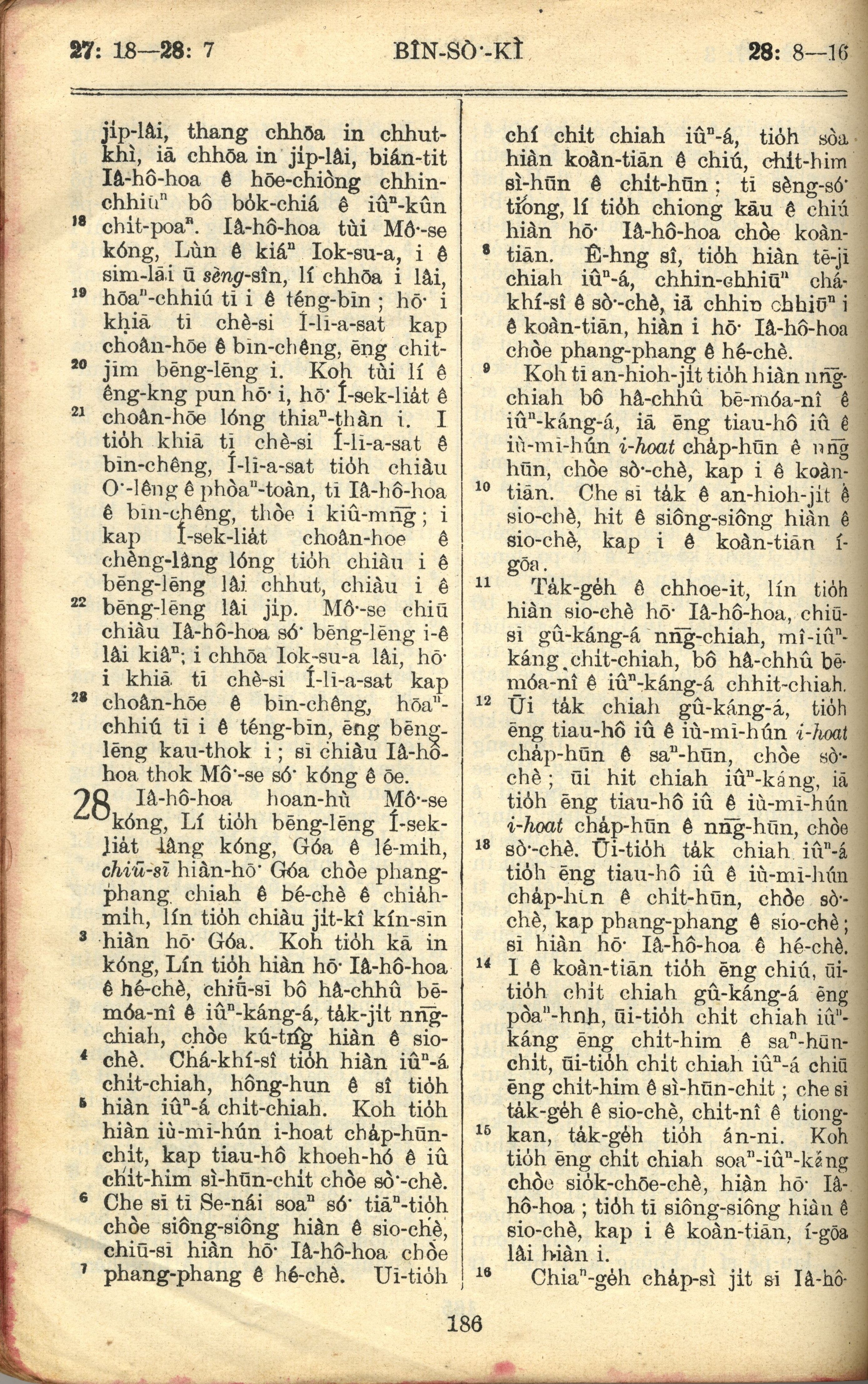 1957年巴克禮全羅台語聖經串珠版 民數記 27 章 18 節到 28 章 16 節