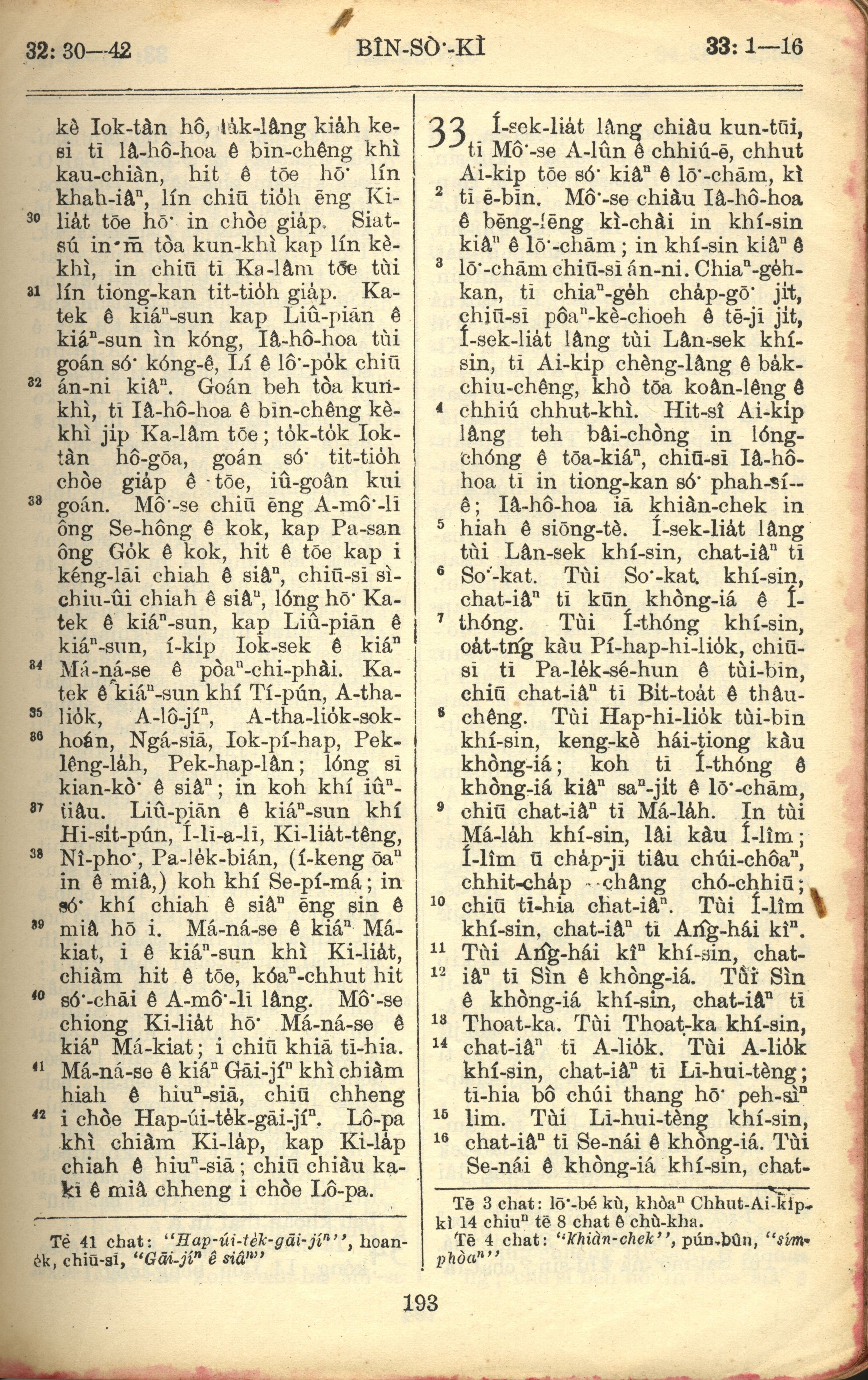 1957年巴克禮全羅台語聖經串珠版 民數記 32 章 30 節到 33 章 16 節