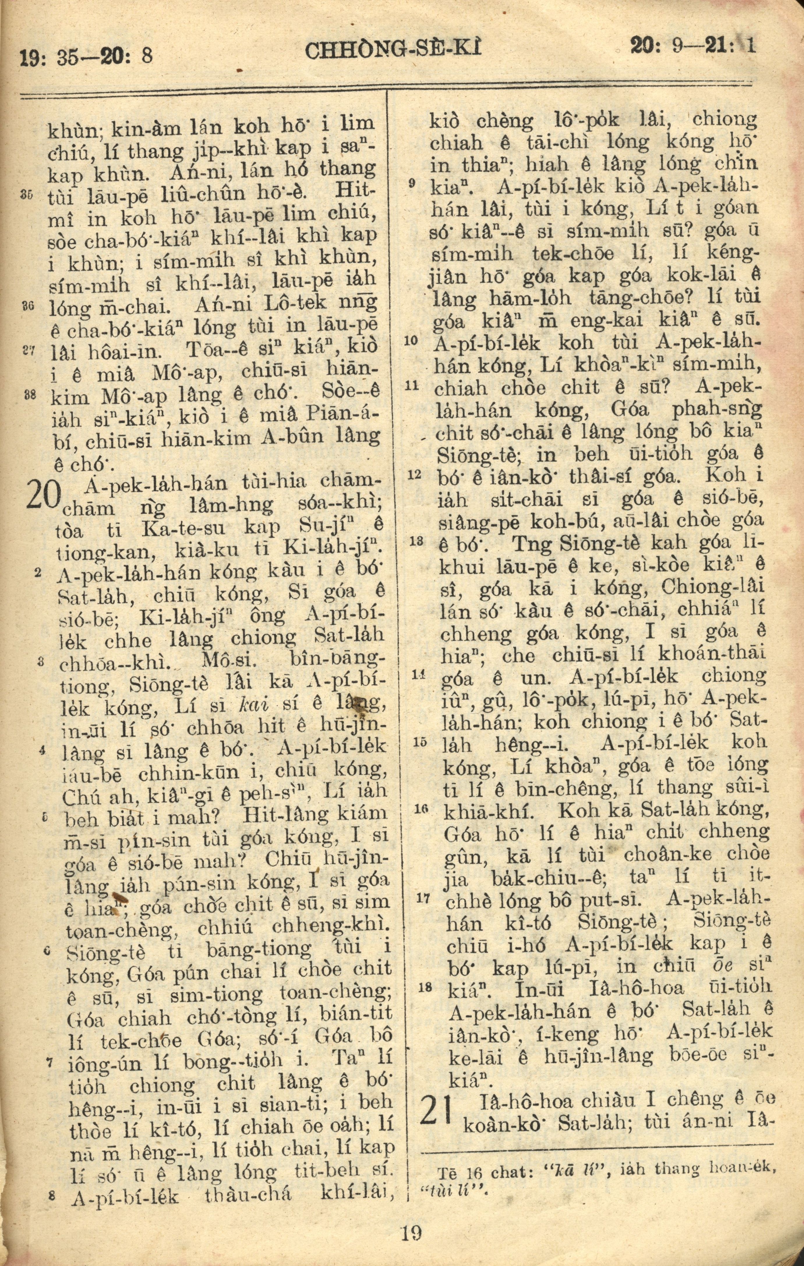 1957年巴克禮全羅台語聖經串珠版 創世記 19 章 35 節到 21 章 1 節
