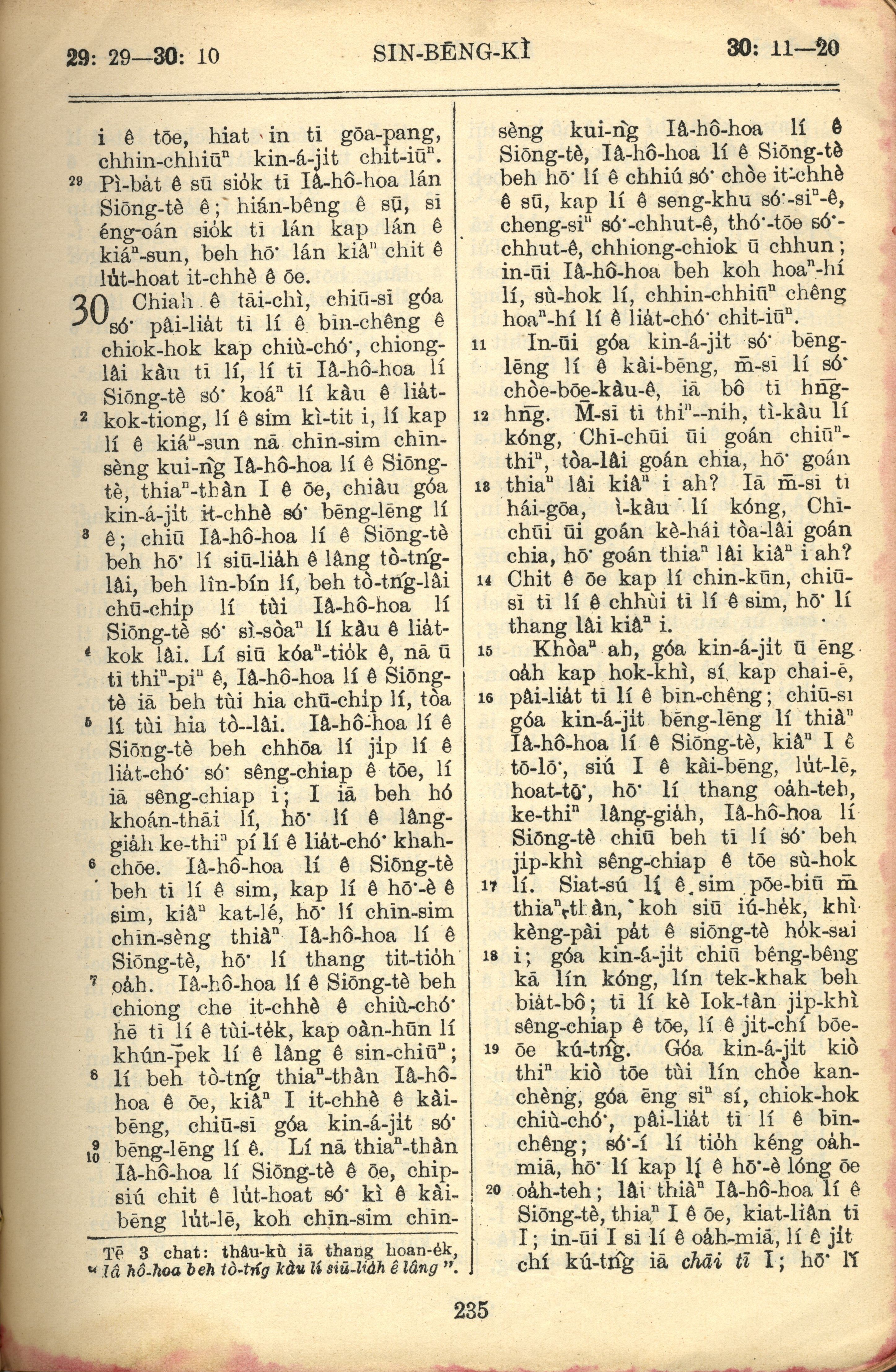 1957年巴克禮全羅台語聖經串珠版 申命記 29 章 29 節到 30 章 20 節