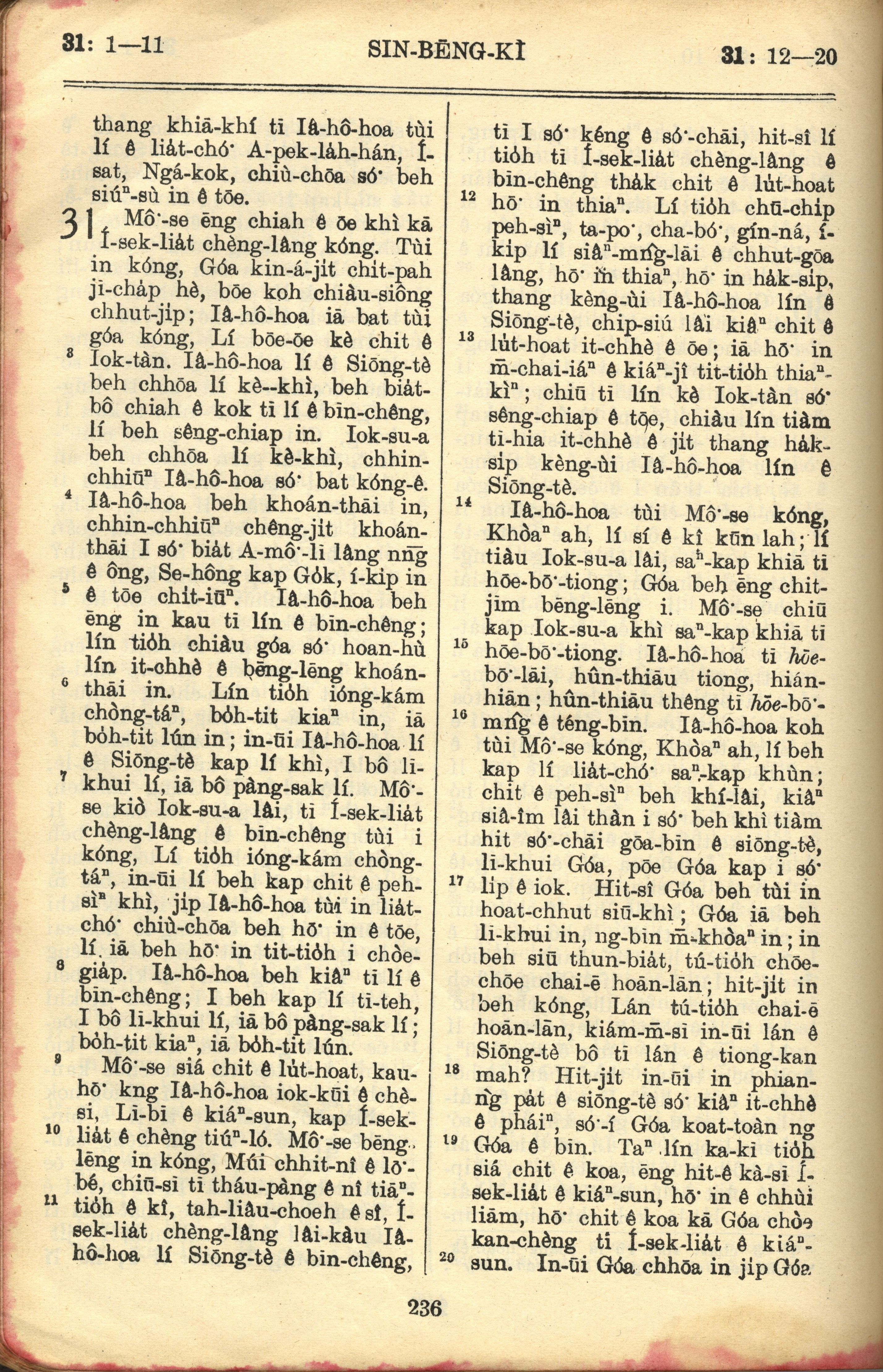 1957年巴克禮全羅台語聖經串珠版 申命記 31 章 1 節到 31 章 20 節