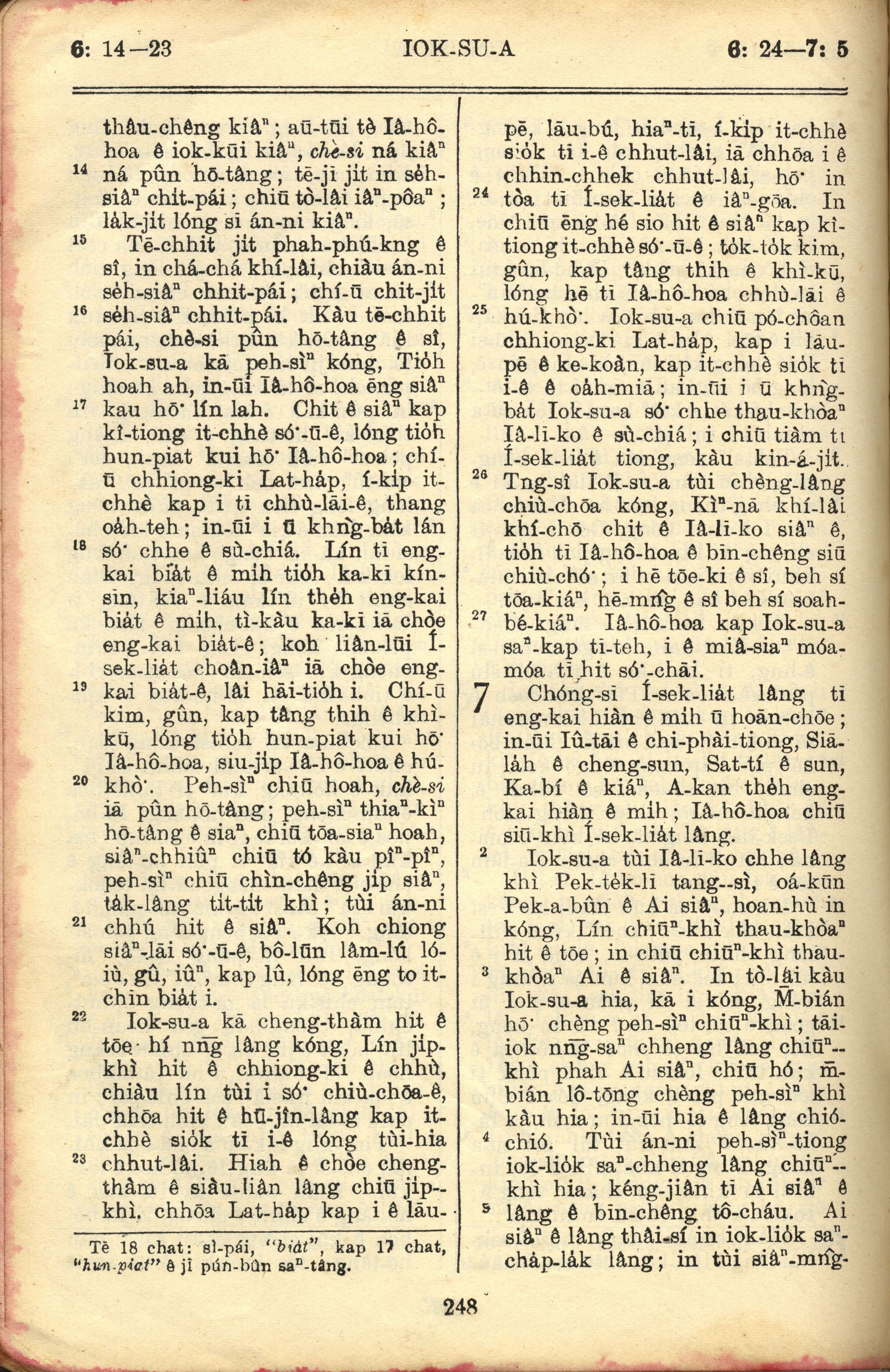 1957年巴克禮全羅台語聖經串珠版 約書亞記 6 章 14 節到 7 章 5 節