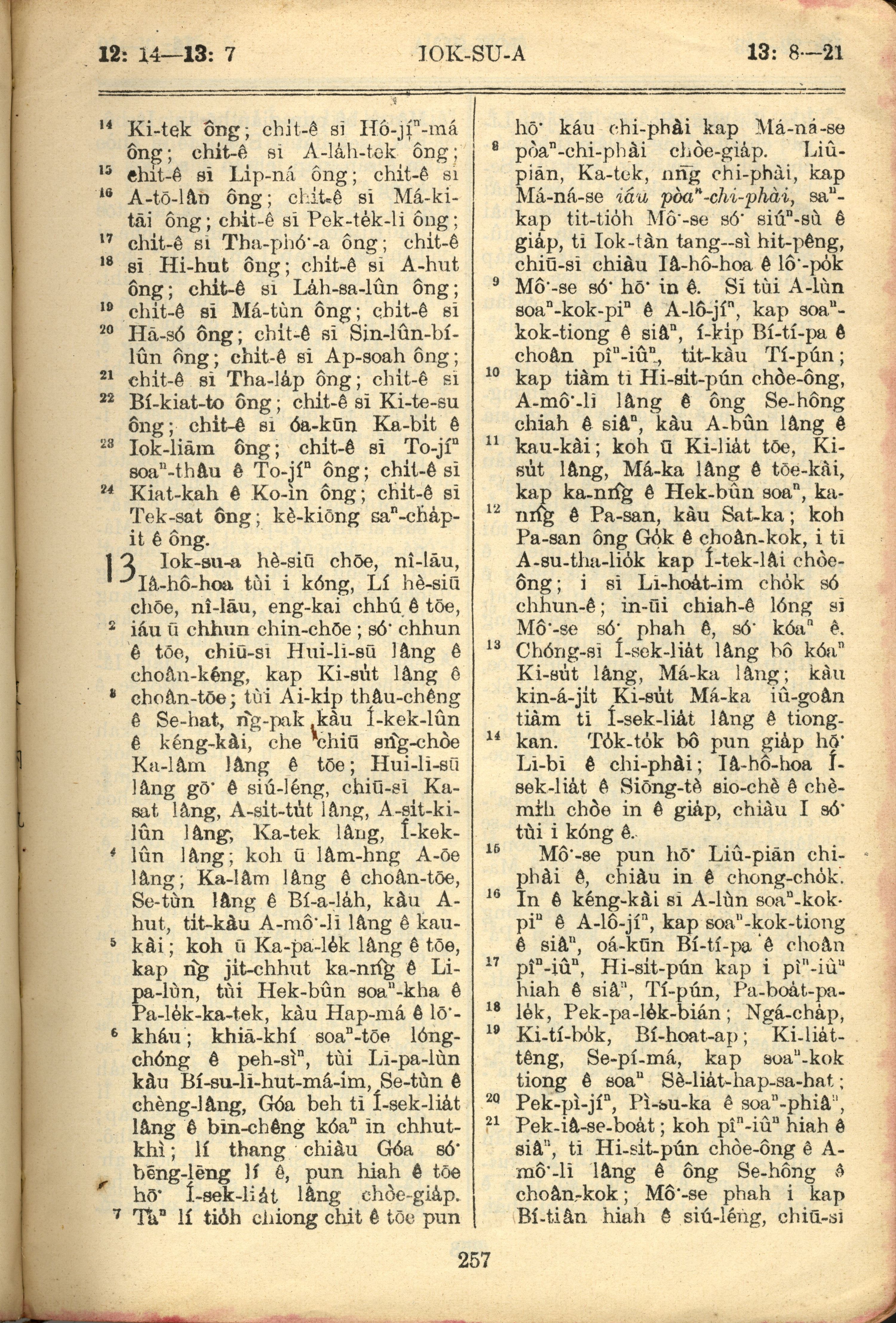 1957年巴克禮全羅台語聖經串珠版 約書亞記 12 章 14 節到 13 章 21 節