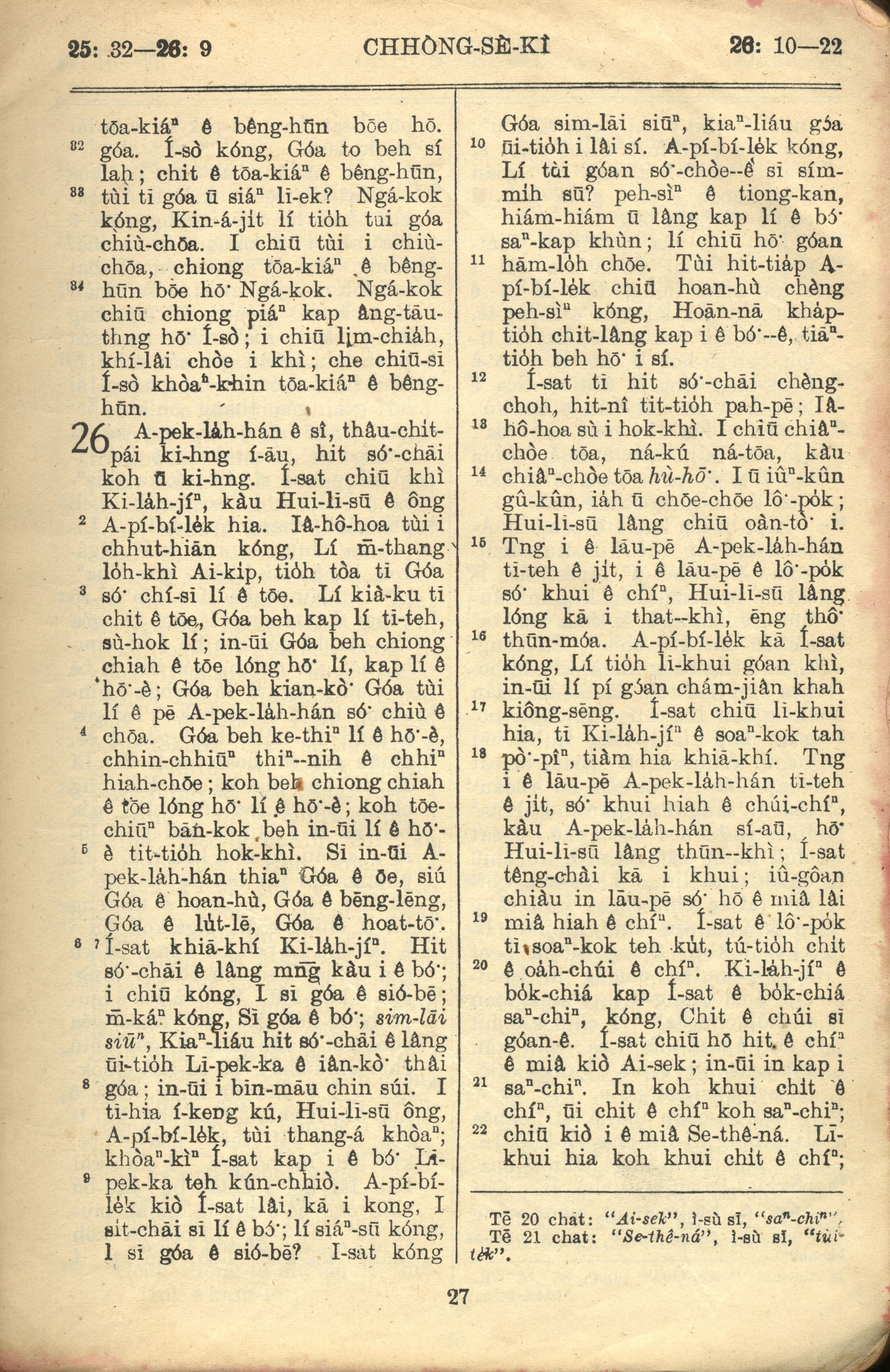 1957年巴克禮全羅台語聖經串珠版 創世記 25 章 32 節到 26 章 22 節