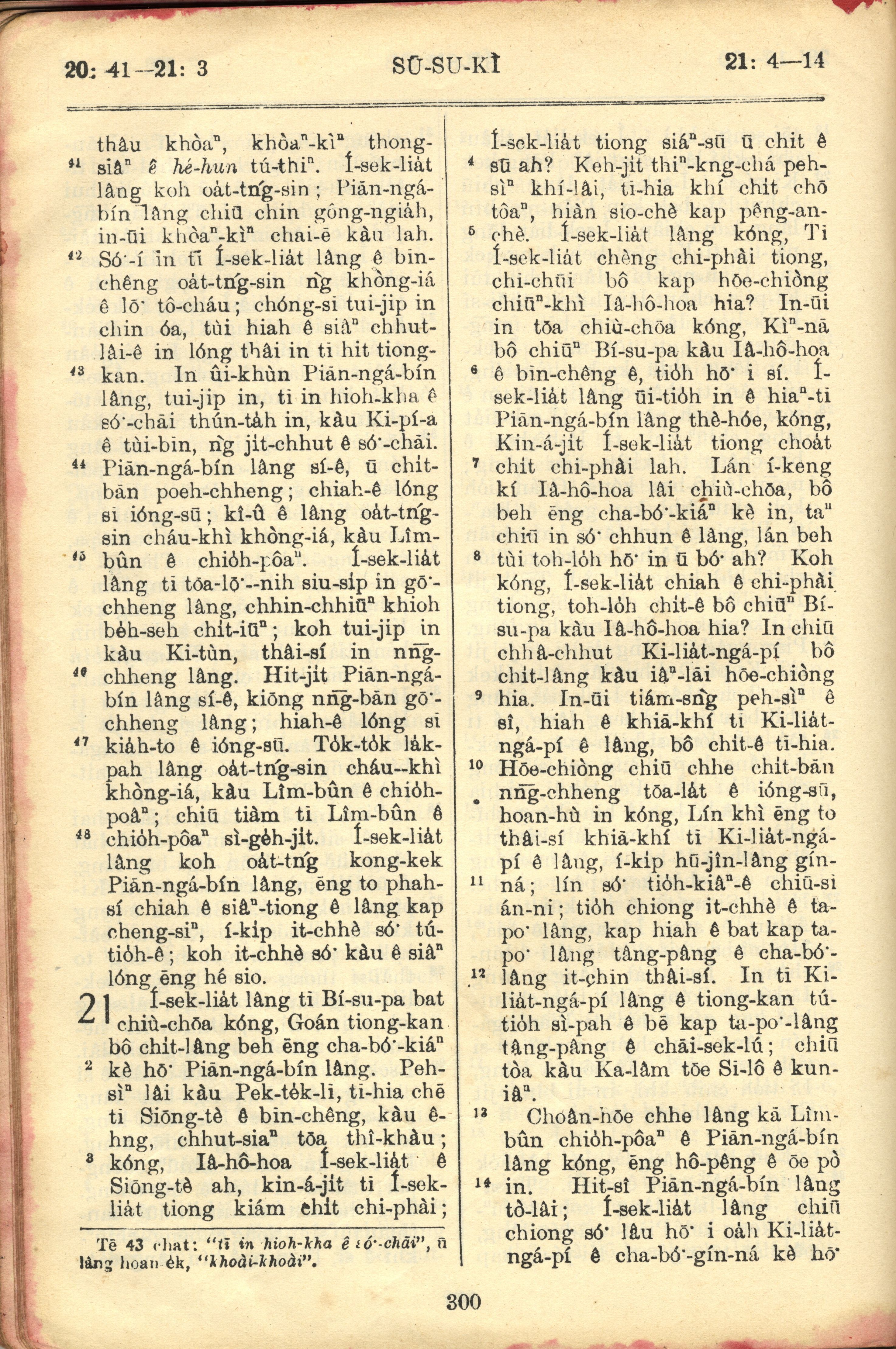 1957年巴克禮全羅台語聖經串珠版 士師記 20 章 41 節到 21 章 14 節