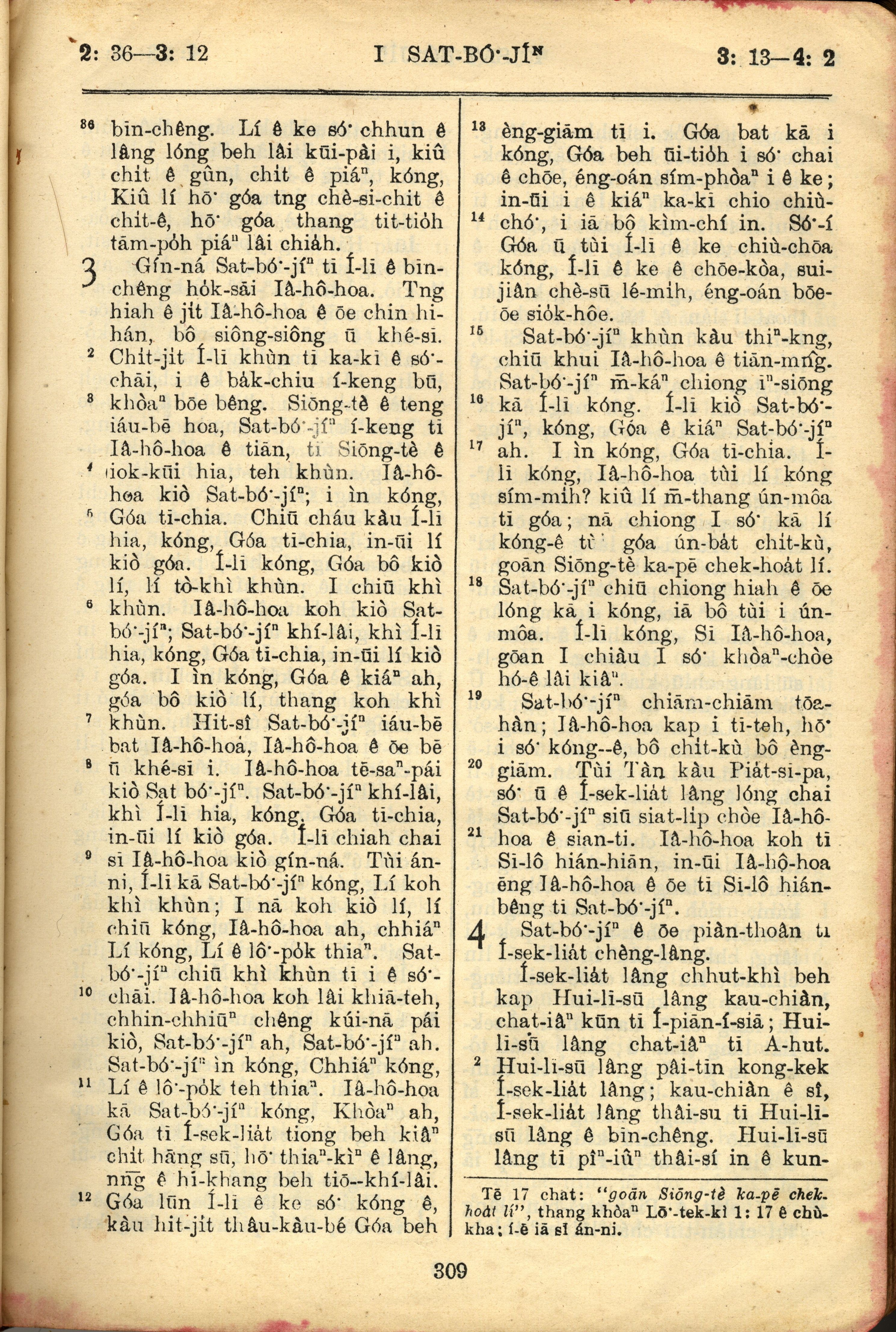 1957年巴克禮全羅台語聖經串珠版 撒母耳記上 2 章 36 節到 4 章 2 節
