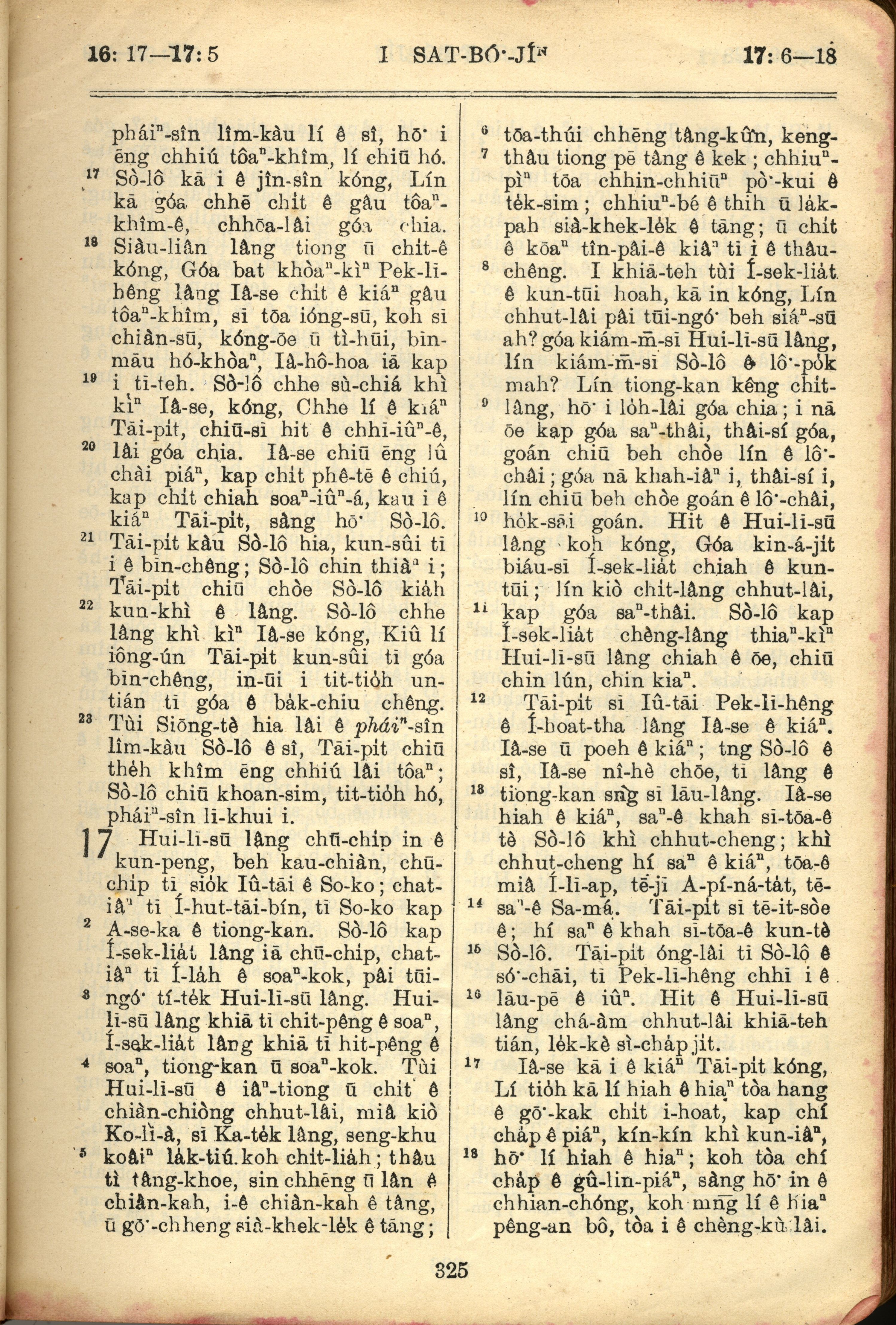 1957年巴克禮全羅台語聖經串珠版 撒母耳記上 16 章 17 節到 17 章 18 節
